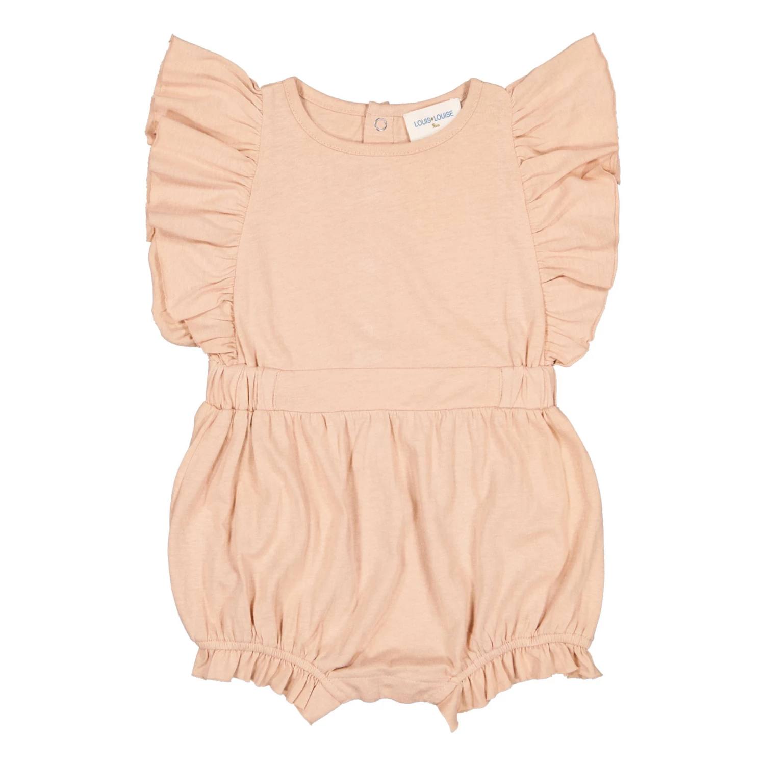 - Gathered detail, Elastic at thighs, Elastic at back, Frilled sleeves, Crew neck, Pleated