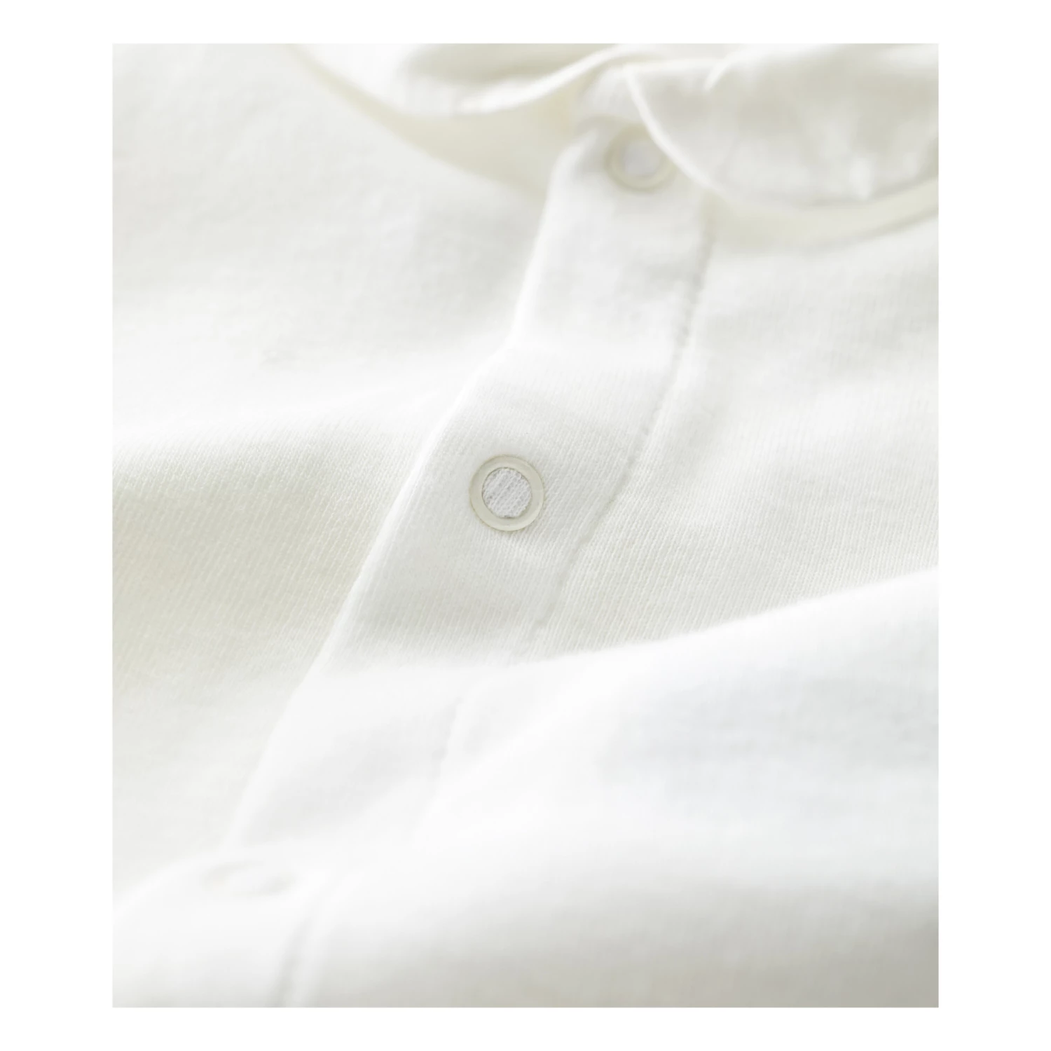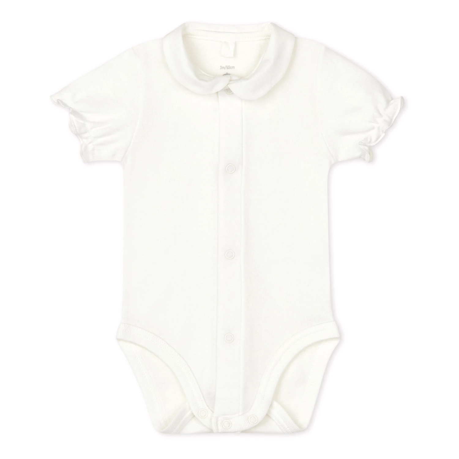 - Elastic sleeves, Short sleeves, Top stitched edges, Ruff collar