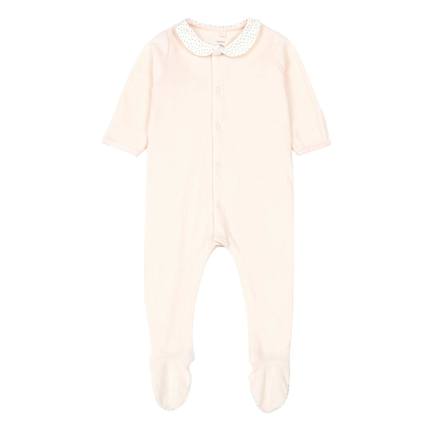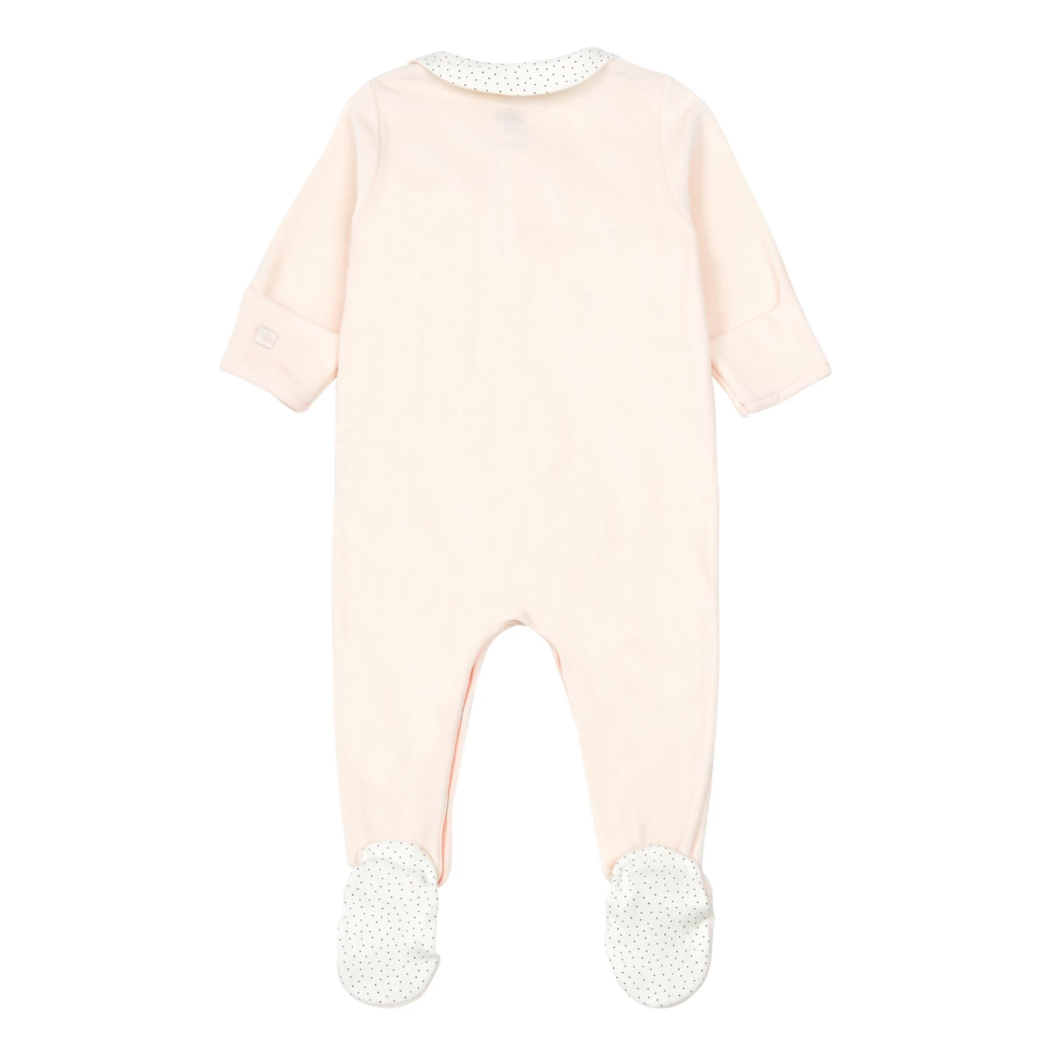 - Soft, Long sleeves, Sleeve turn-ups, Contrasting edges, Sewn-in brand label, Integrated feet, Peter Pan collar, Comfortable