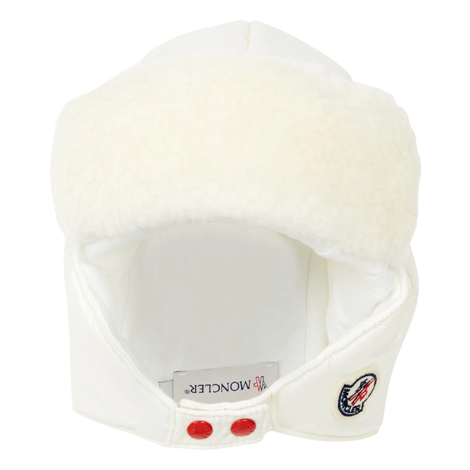 - A complete accessory combining a shiny windproof nylon laqué outer layer with a jersey interior and a warm and very soft teddy bear fabric visor. Adjustable fastening with press studs.