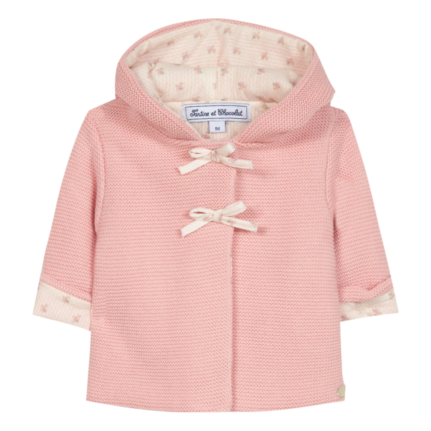 - Lined, Decorative bow(s), Decorative knit, Hood, Lined hood