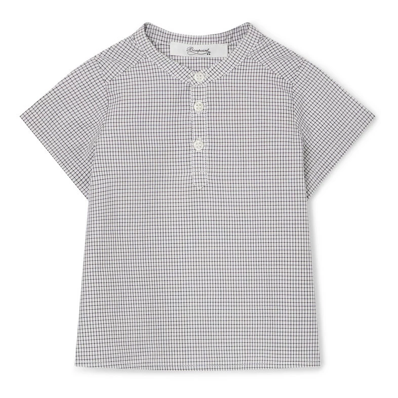- Crew neck, Lightweight, Short sleeves, Top stitched edges, Wide sleeves, Mandarin collar