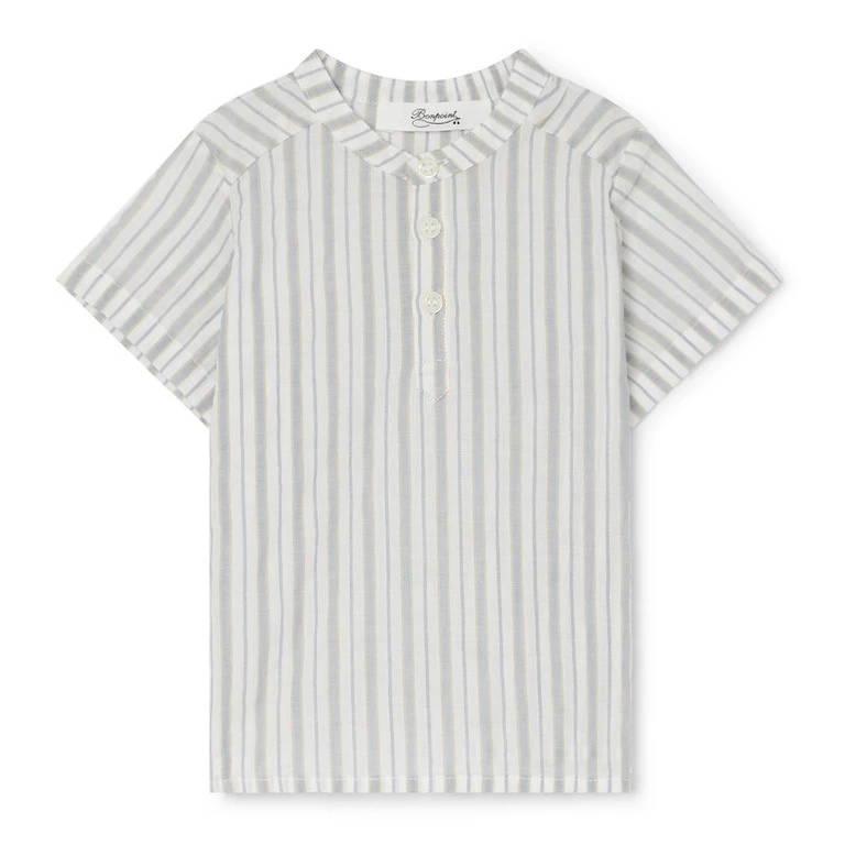 - Garment pulls on, Placket, Stripe print