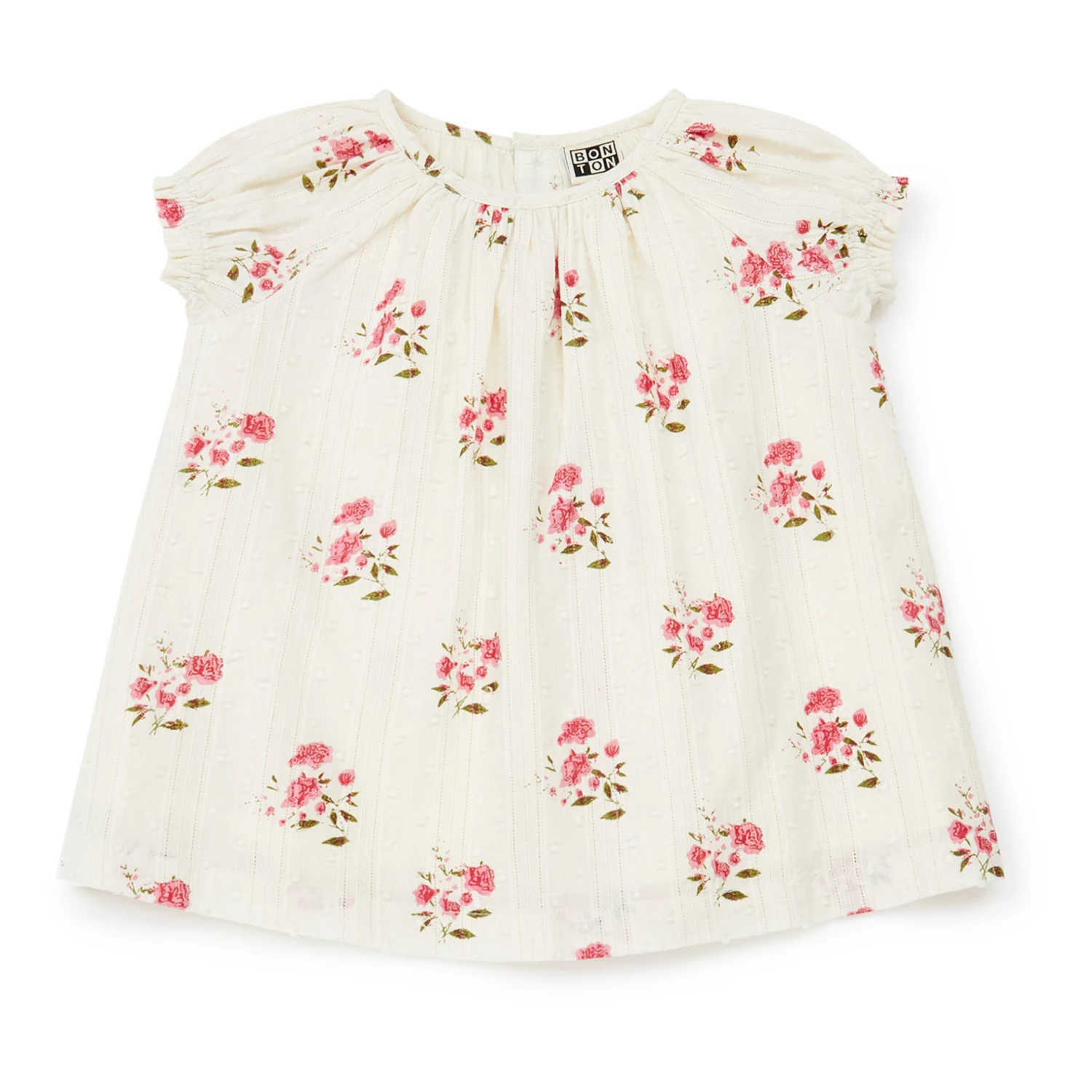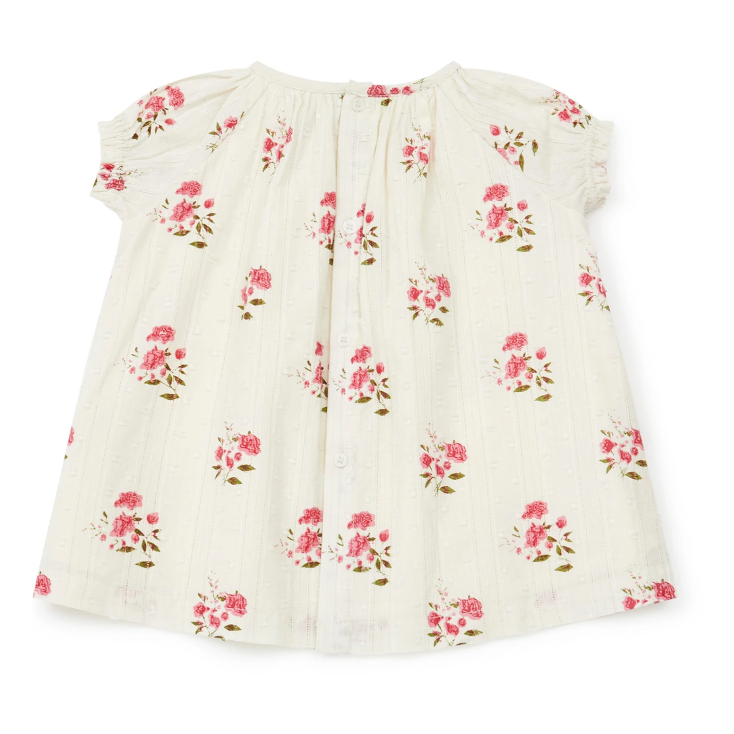 - Elastic sleeves, Lined, Gathered neckline, Crew neck, Lightweight, Short sleeves, Openwork