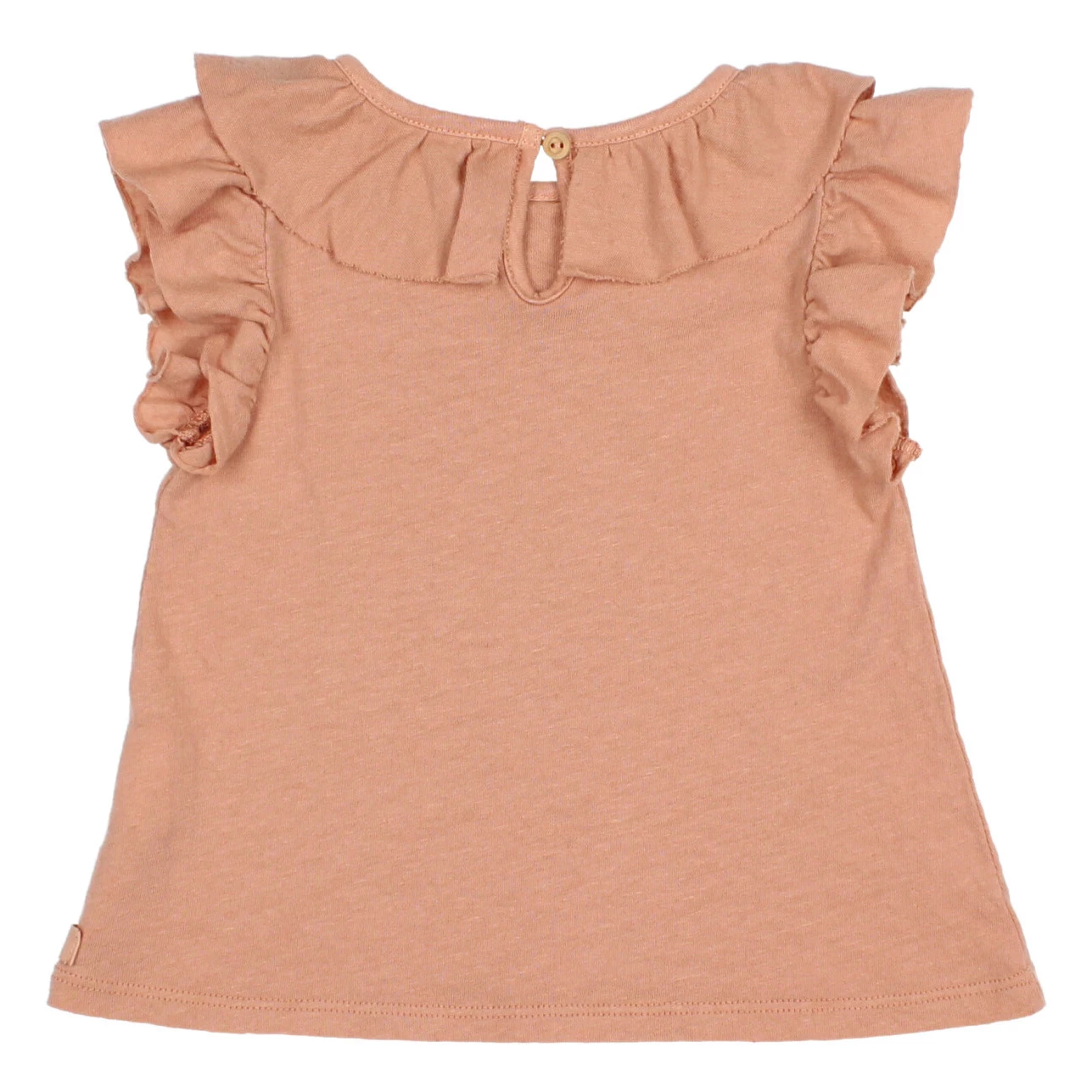 - Frilled sleeves, Crew neck, Top stitched, Straight edges, Sewn-in brand label, Frilled collar, Comfortable