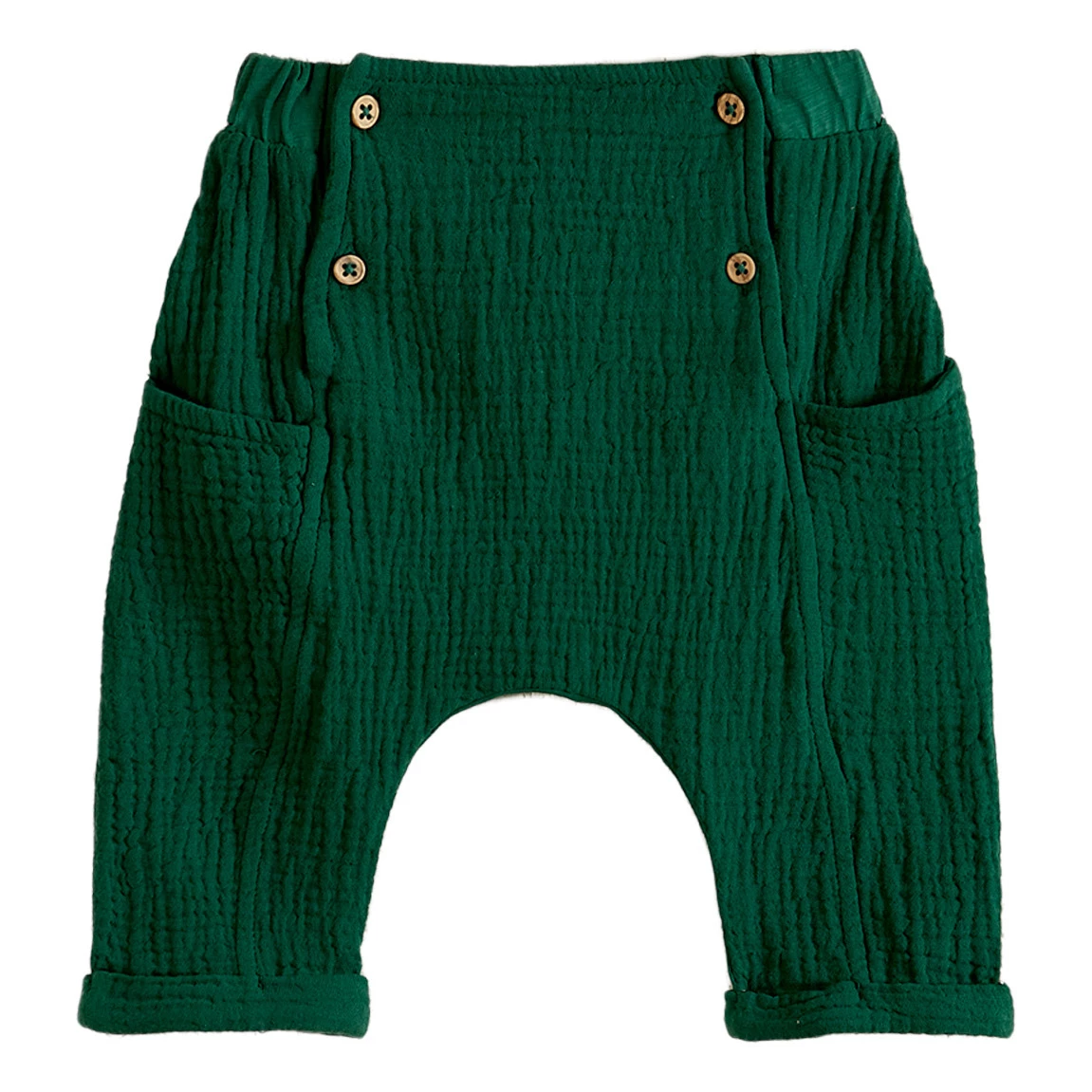 - Curved Inset Pocket, Contrast stitching, Bottom turn-ups, Elasticated waist, Pleated