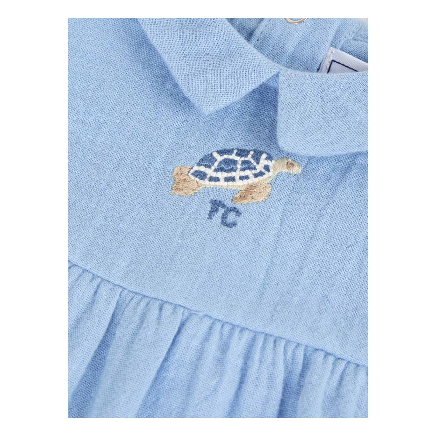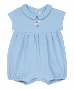 - Embroidered logo, Short sleeves, Embroidered patch(es), Knife pleat(s), Close-fitting at thighs, Peter Pan collar