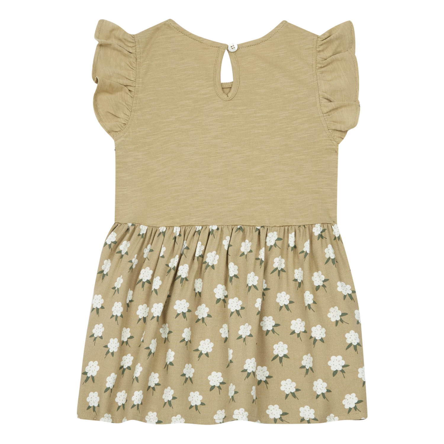 - Details : Flowery print, Round neckline, Ruffle sleeves, Keyhole back