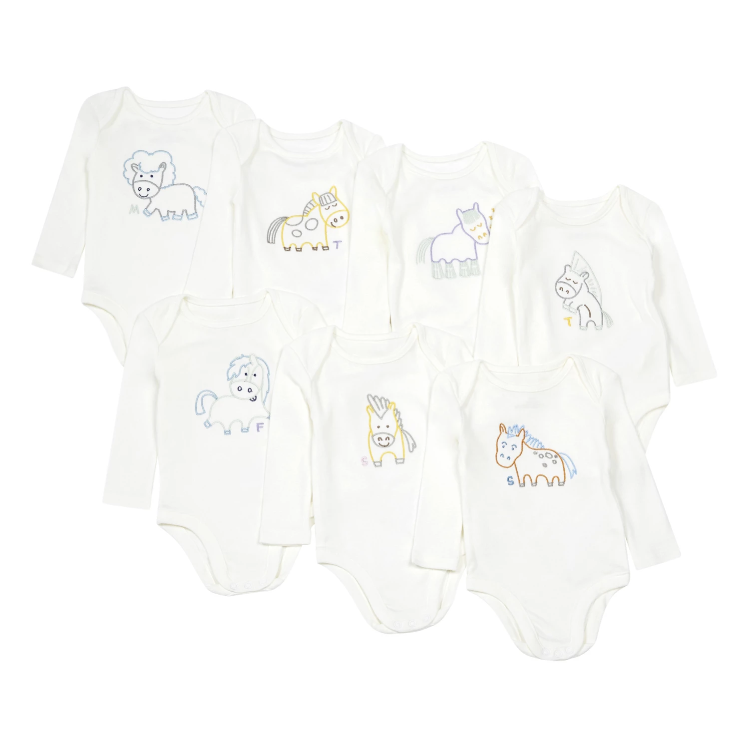 - Details : Embroidered horse print, Round Neck, Long sleeves, US armholes, Popper buttons at crotch, – Comfortable