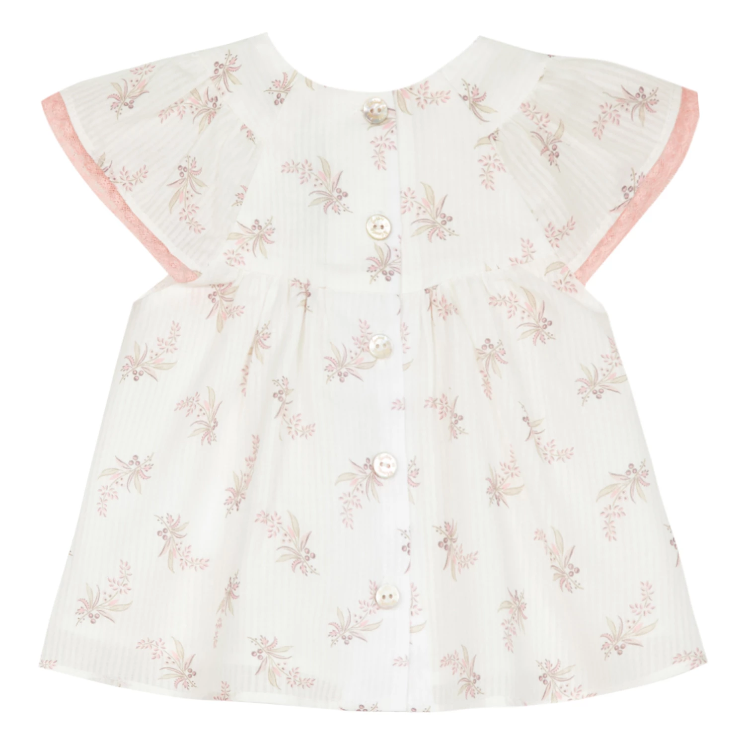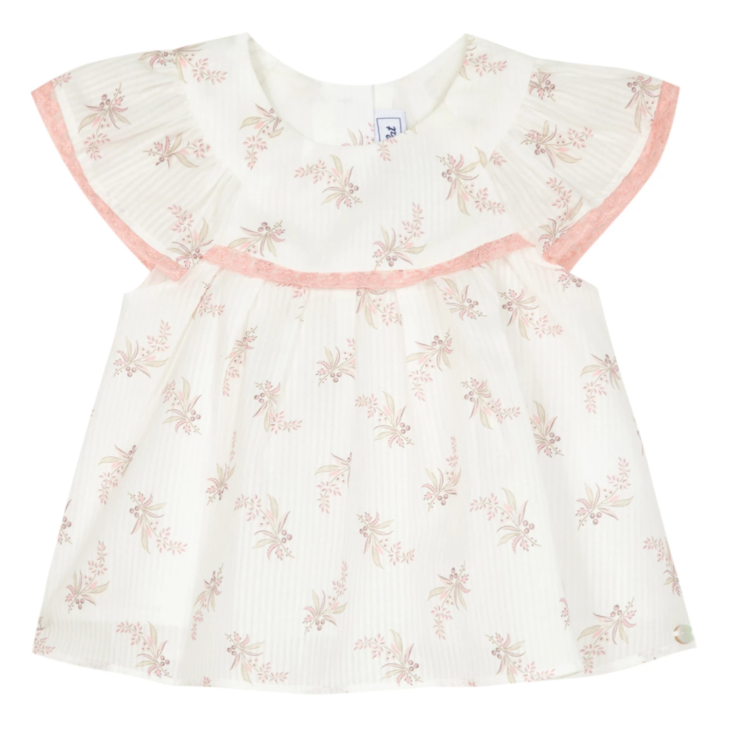 - Flounce sleeve, Lined, Lace details, Crew neck, Pleated