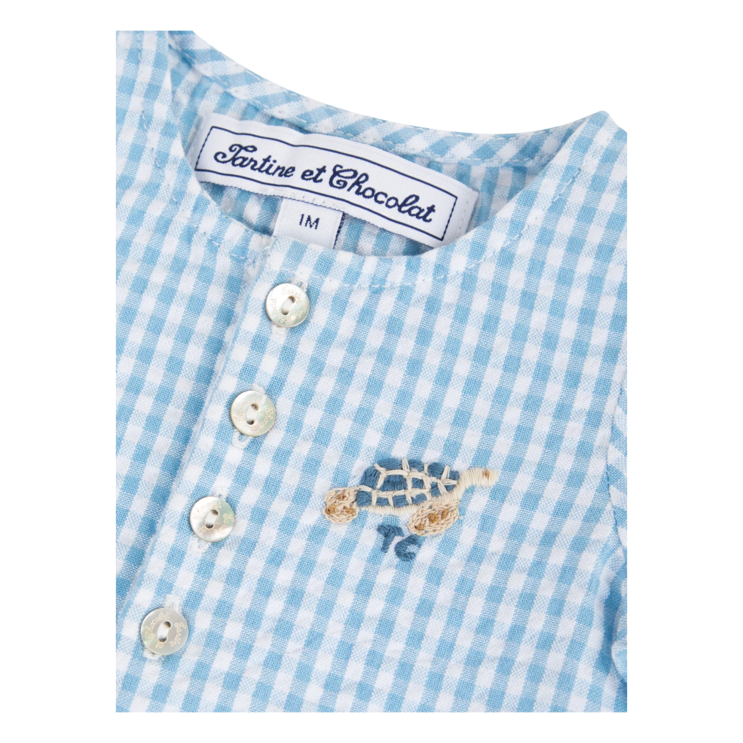 - Wrap-over neckline, Crew neck, Short sleeves, Embroidered patch(es), Contrasting top stitch