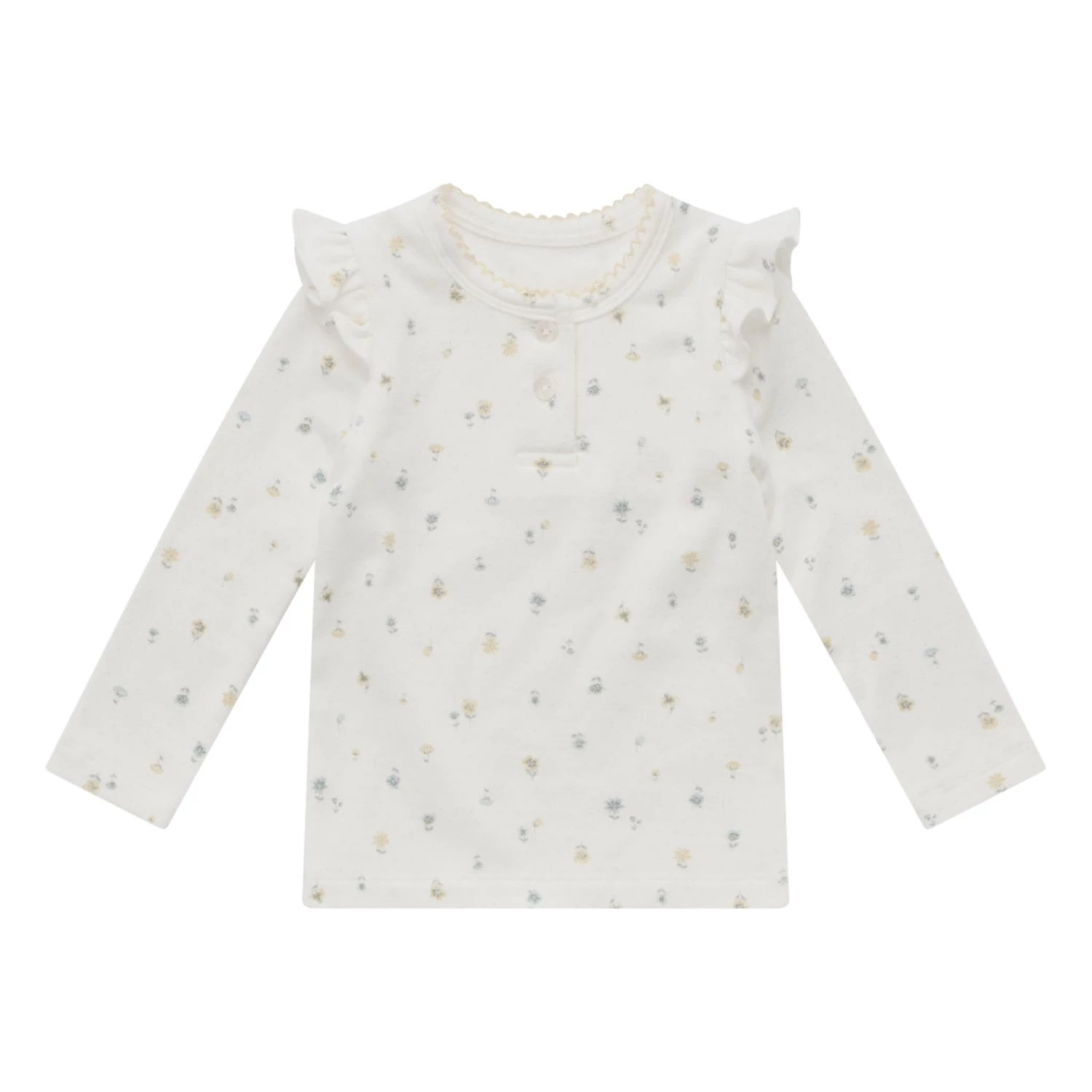 - Contrast stitching, Frilled sleeves, Crew neck, Top stitched, Long sleeves, Scalloped edges, Elasticated waist, Contrasting edges
