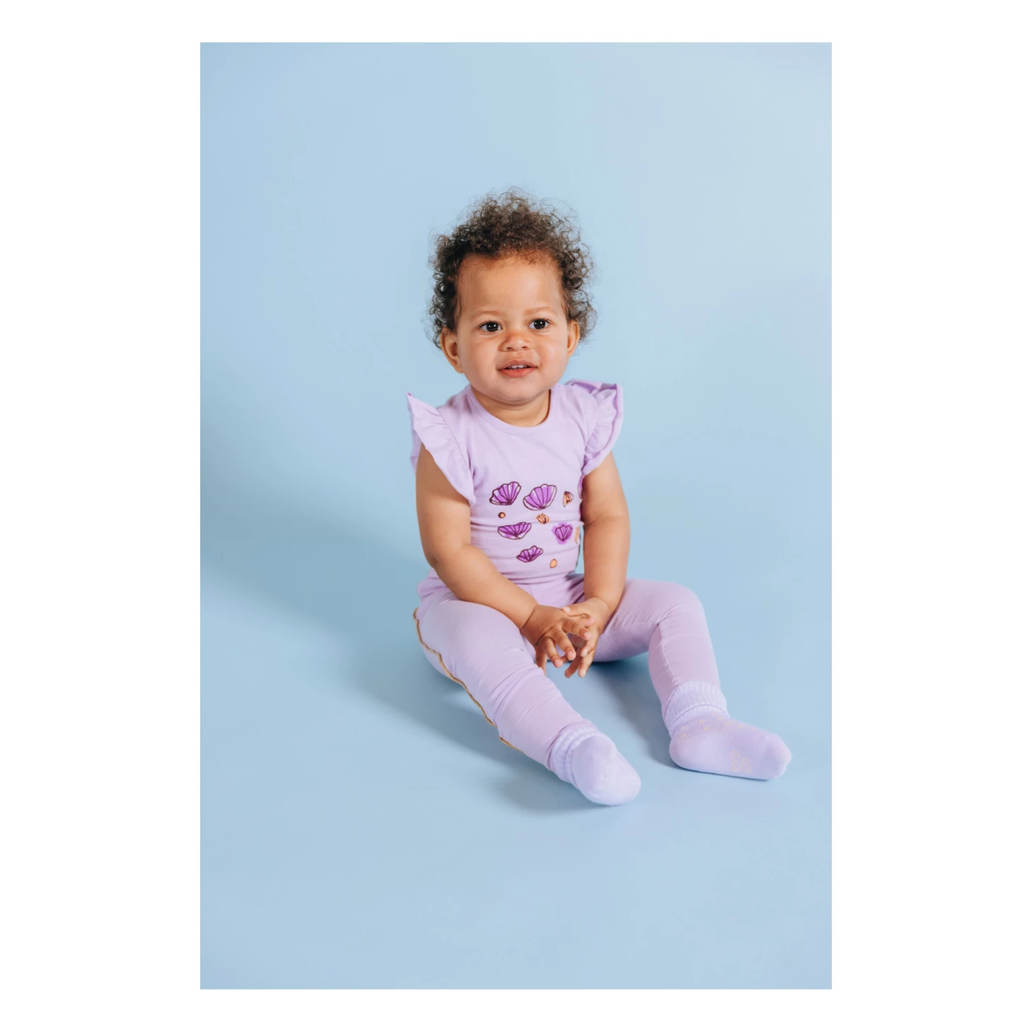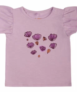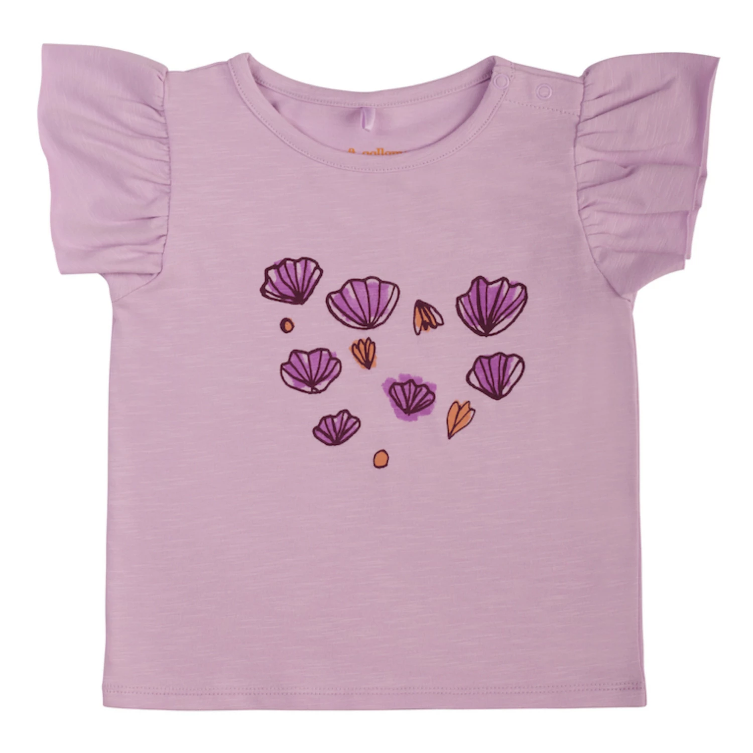 - Frilled sleeves, Crew neck, Top stitched, Short sleeves, Print on front