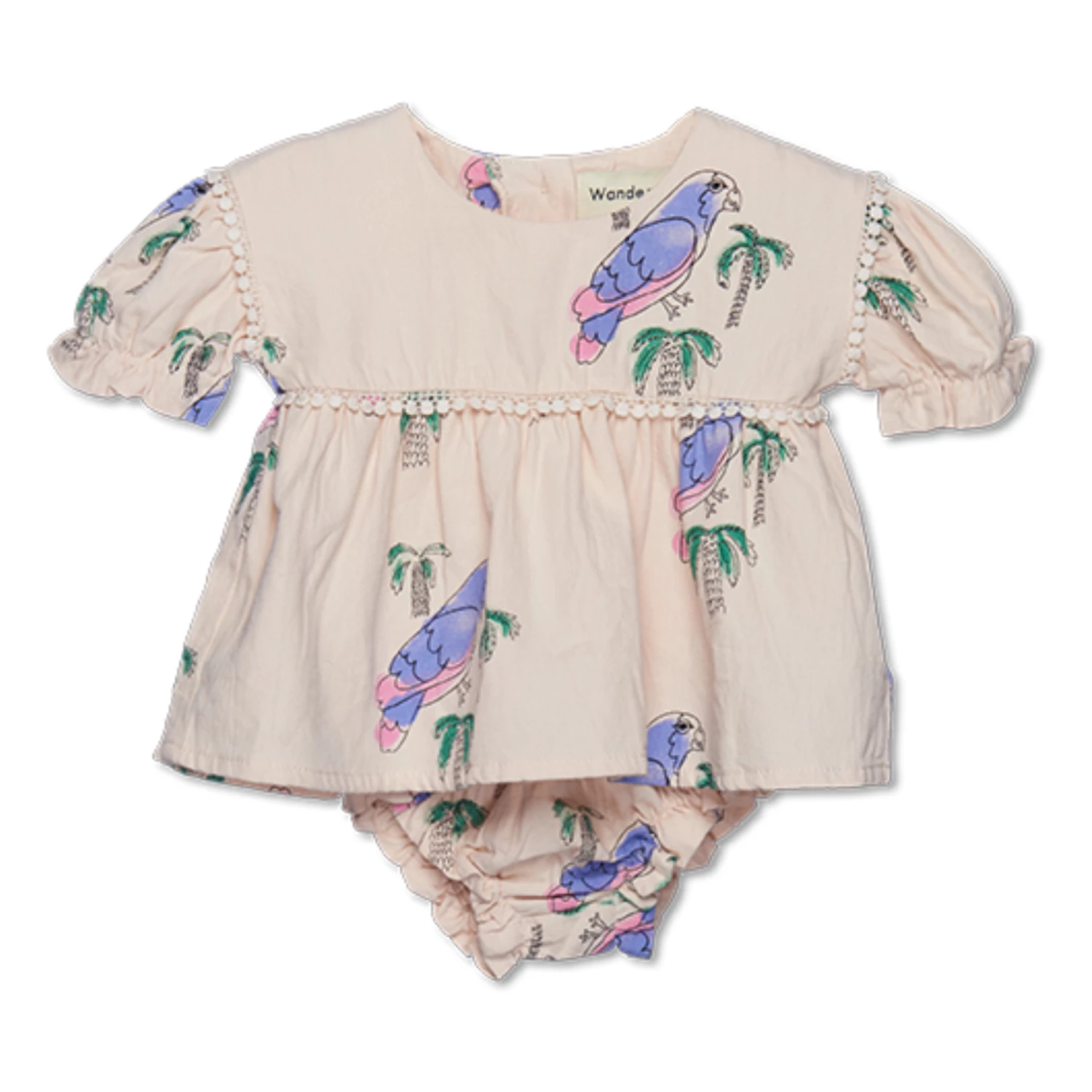 - Lace details, Elastic at thighs, Frilled yoke, Crew neck, Top stitched, 3/4 sleeves, Decorative edges, Elastic cuffs