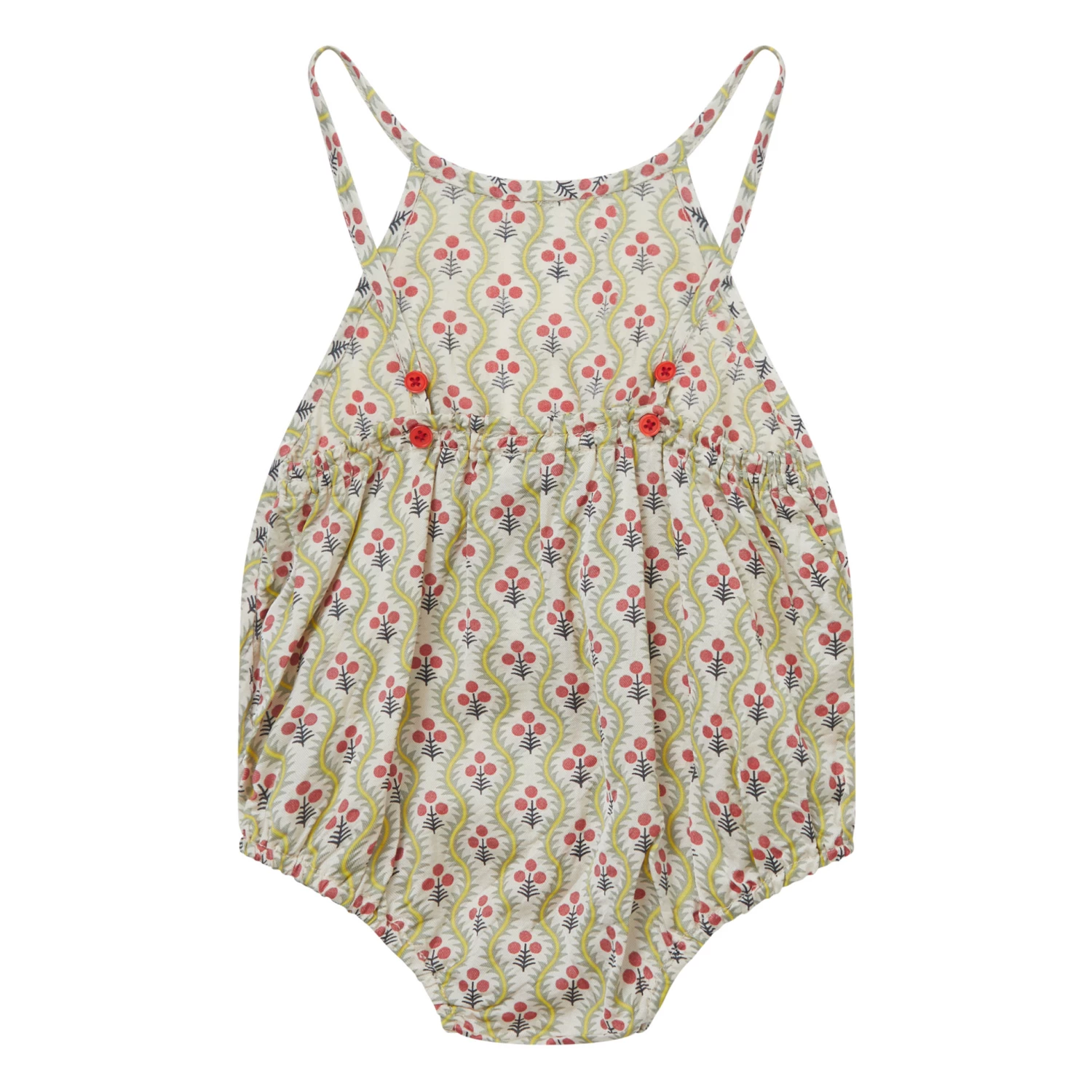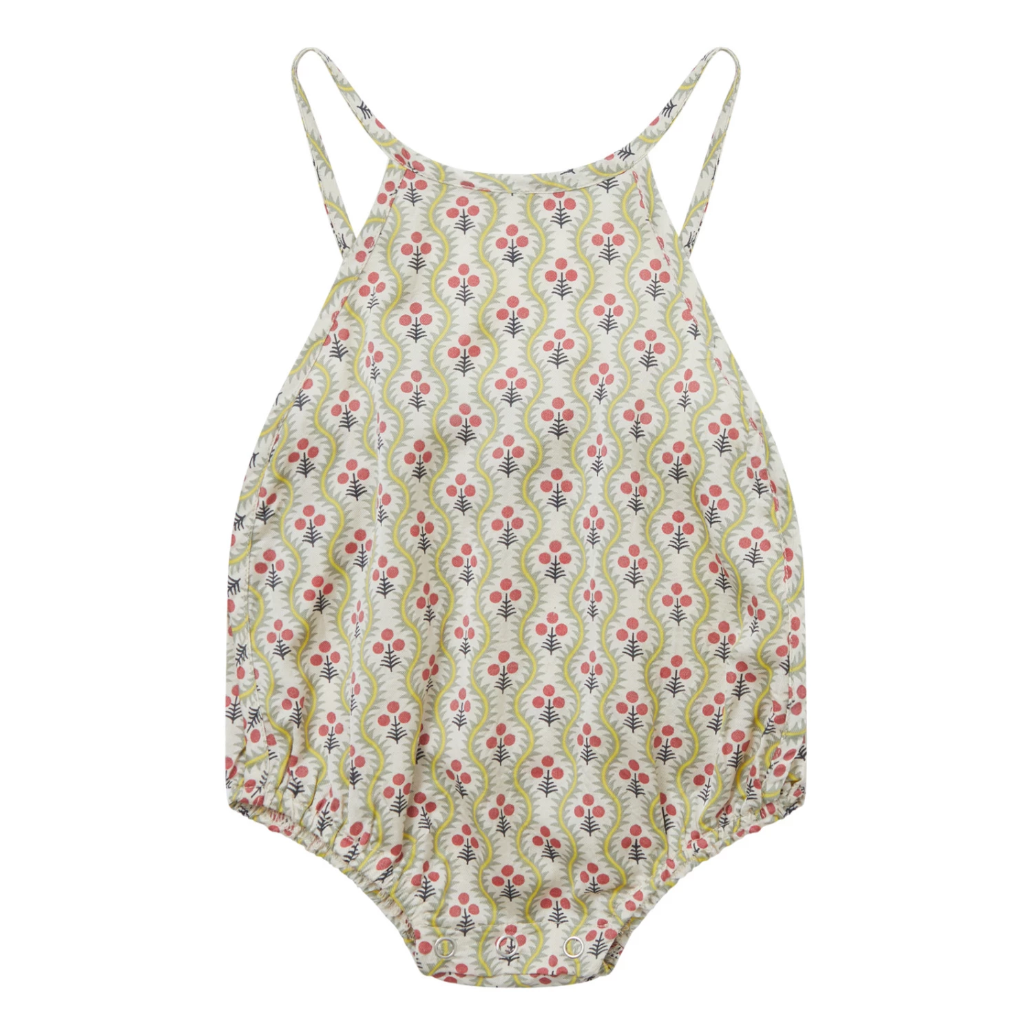 - Tie fastening, Garment pulls on, Press stud(s) at the crotch for easy opening, Flower print
