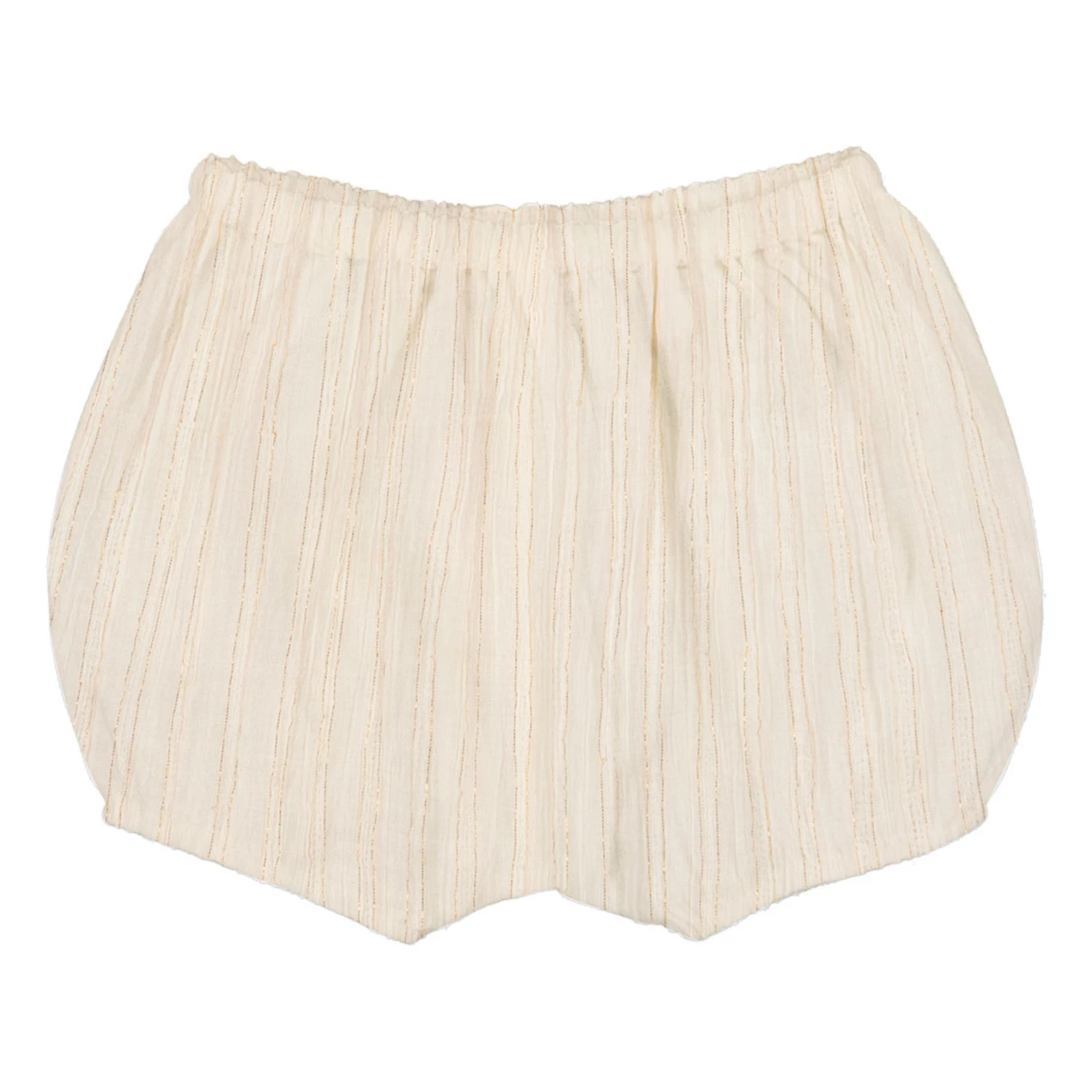- Elastic at thighs, Close-fitting at thighs, Elasticated waist, Pleated, Gathered at the waist, Comfortable