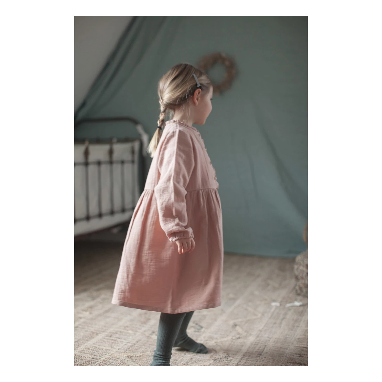 - Long sleeves, Buttoned cuffs, Gathered at the waist, Frilled collar