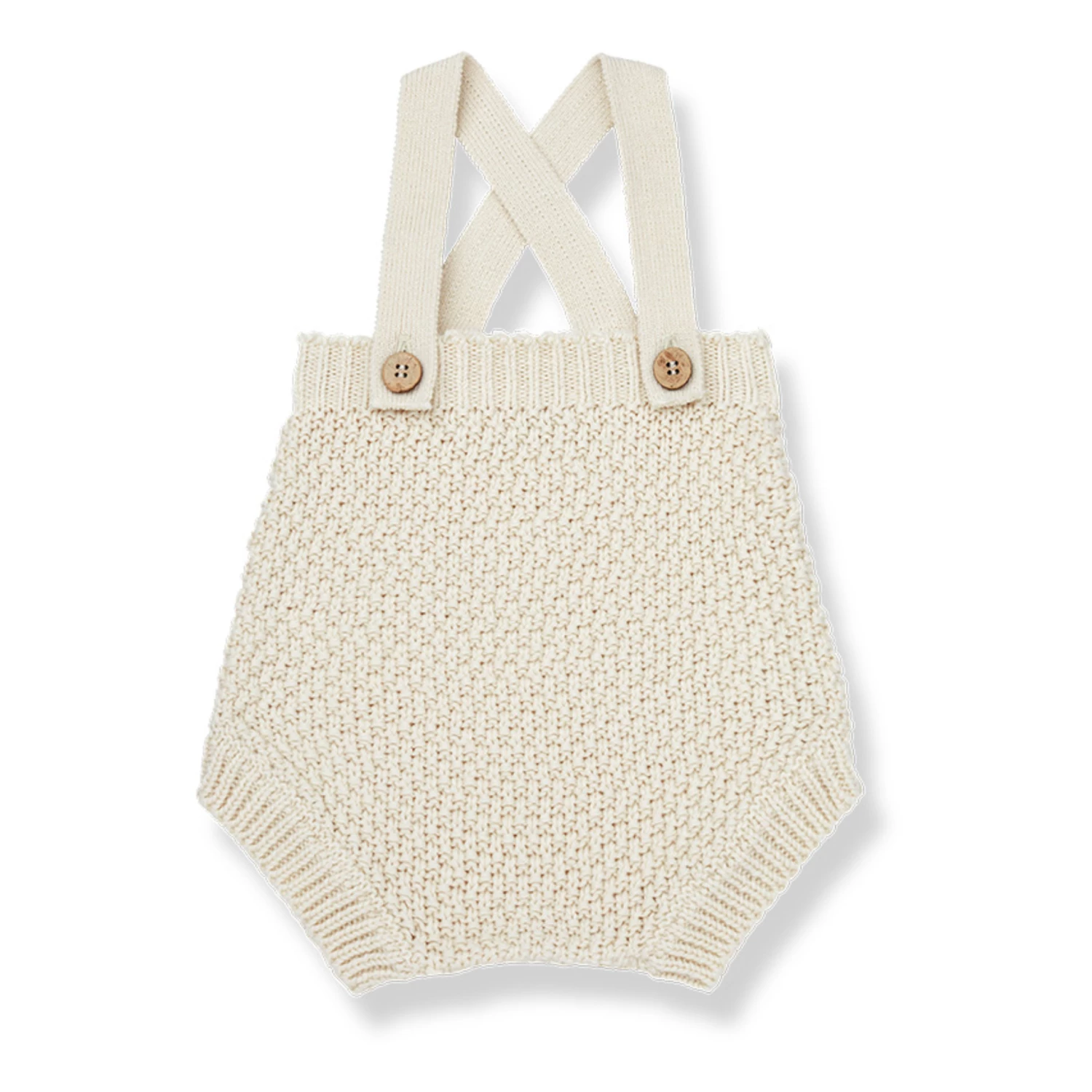 - Elastic at thighs, Ribbed edges, Decorative knit, Straps with buttons, Crossed back straps, Comfortable