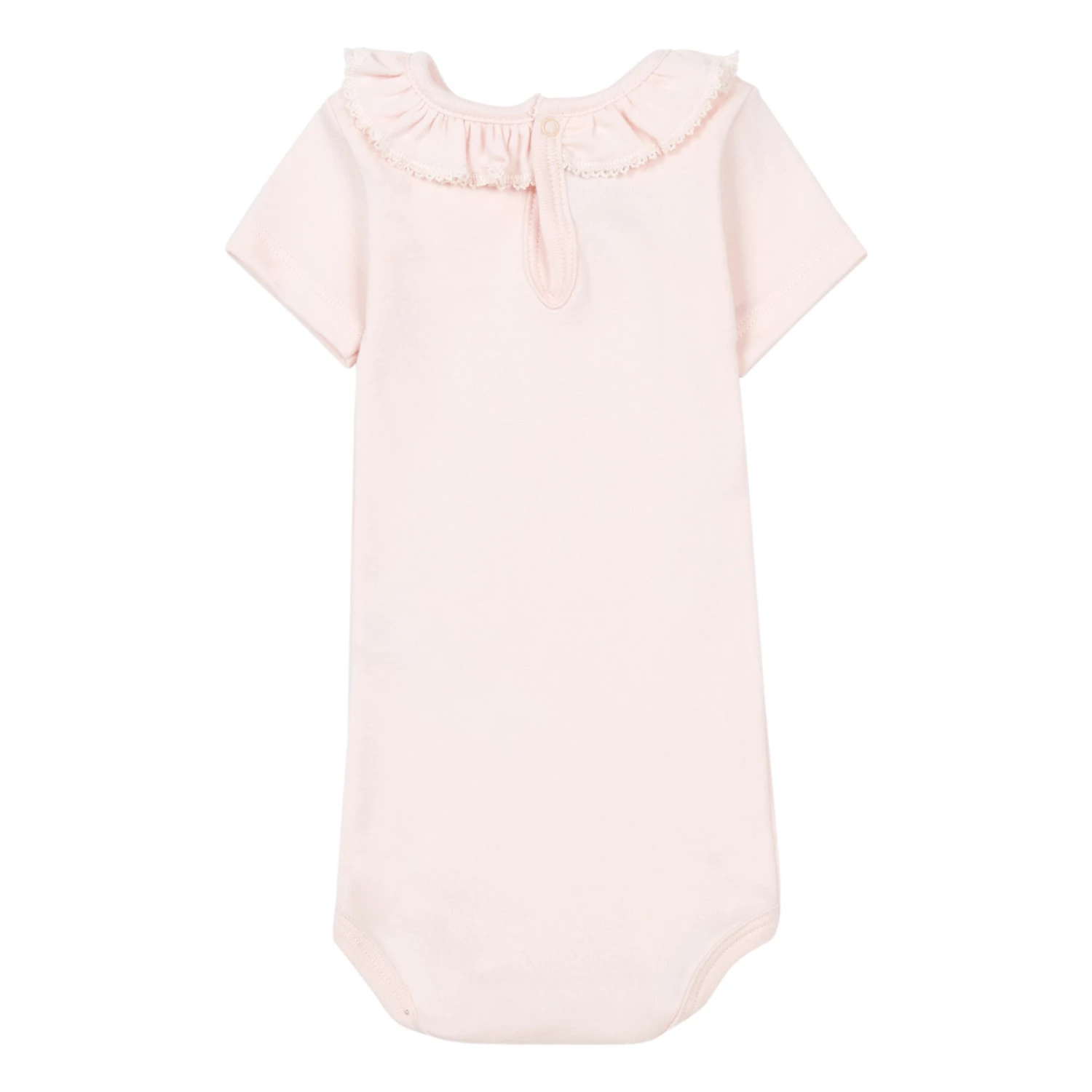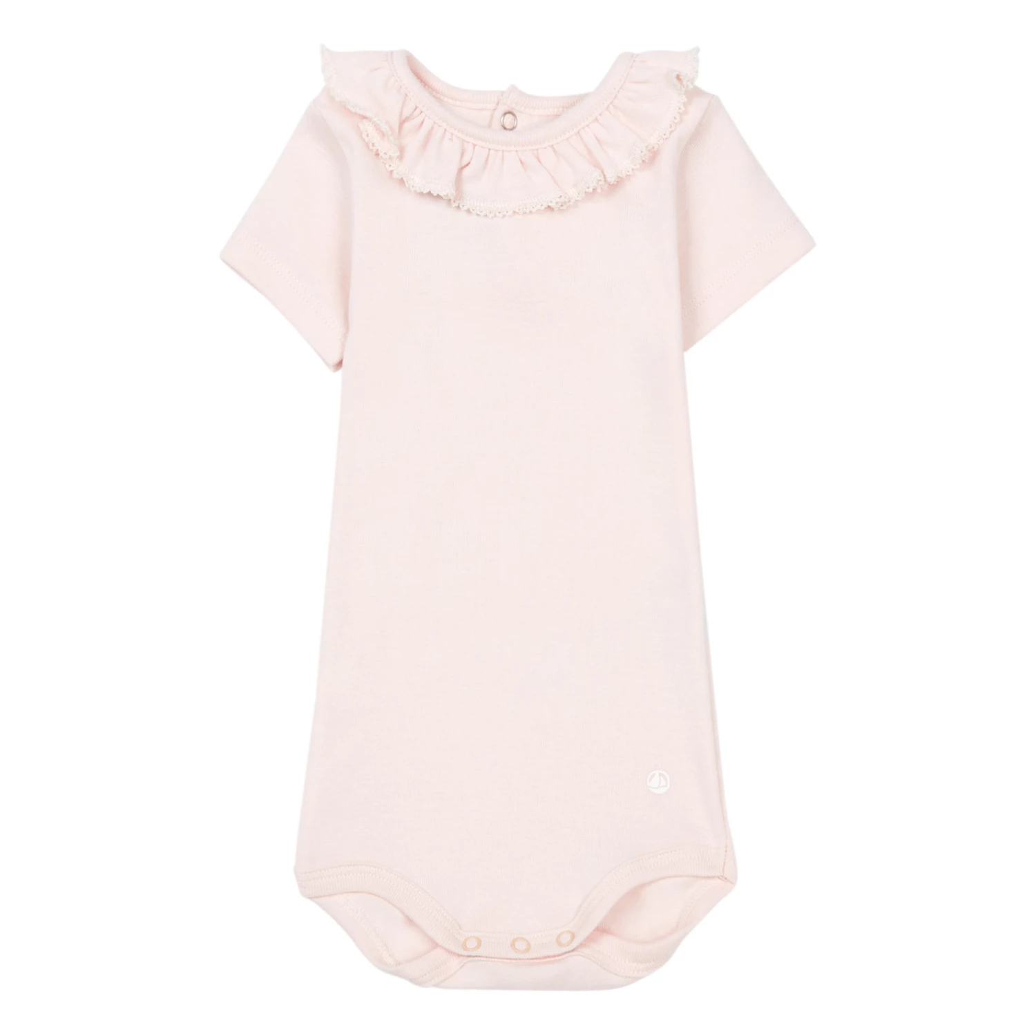 - Details : Ruffle neck collar, Popper fastenings at the back