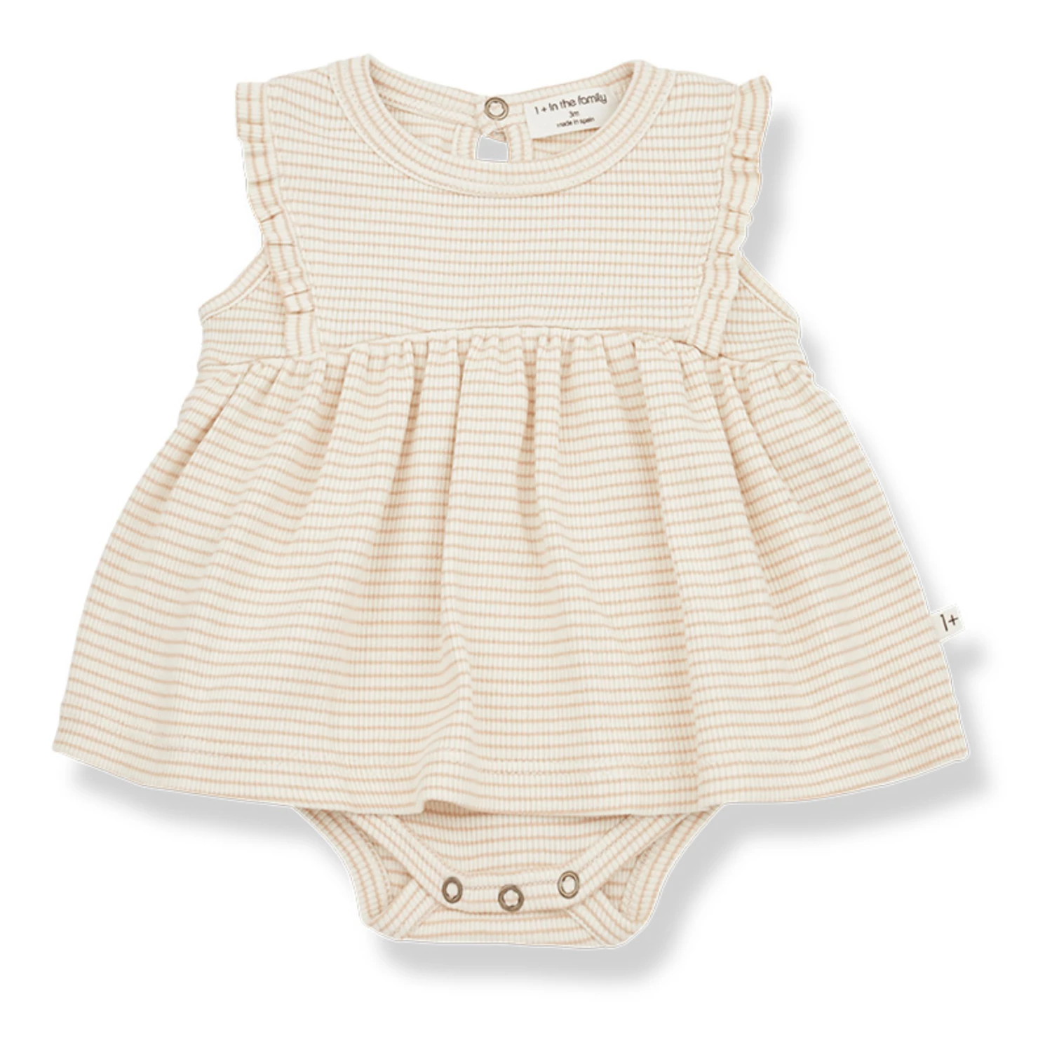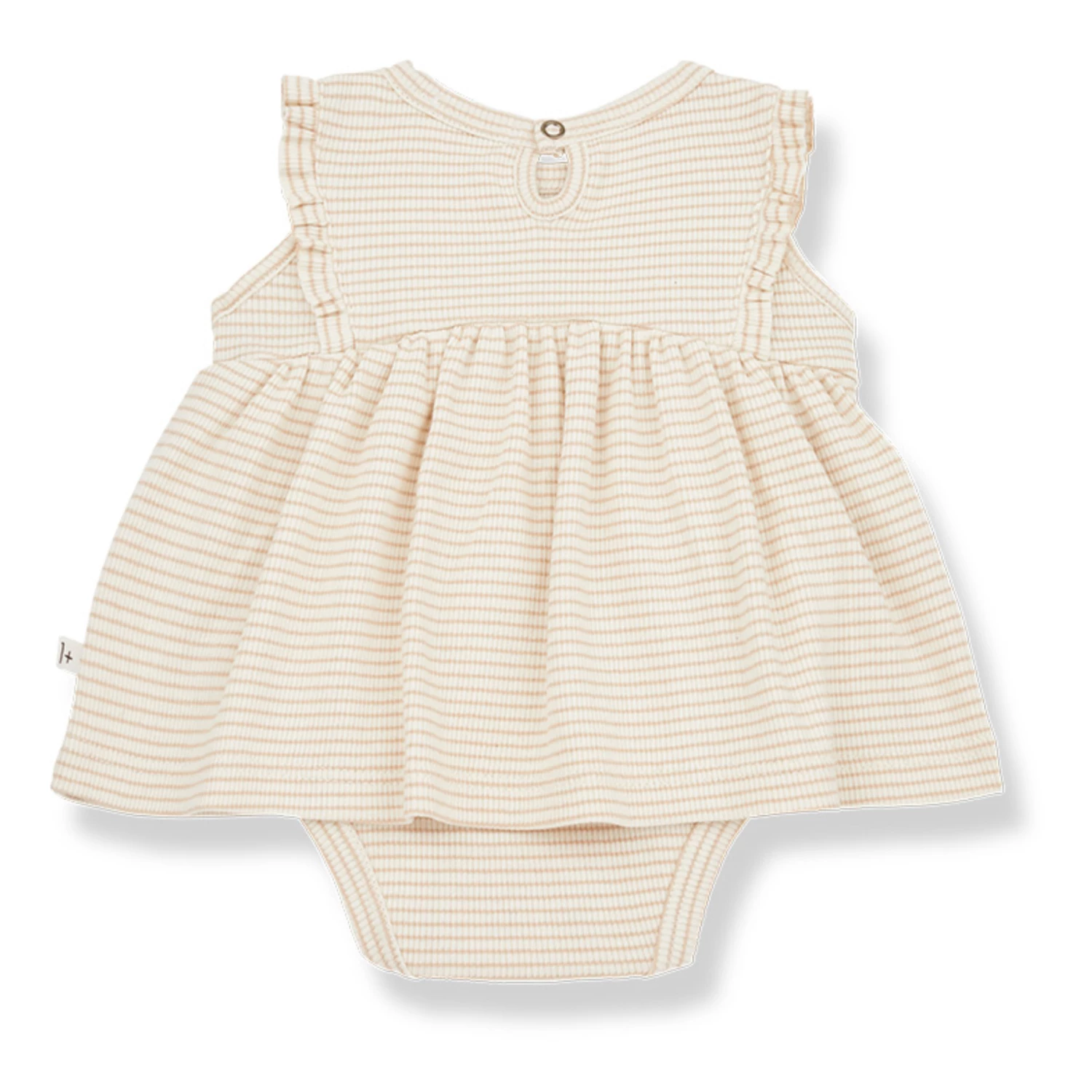 - Press stud(s) at the neck, Press stud(s) at the crotch for easy opening, Stripe print