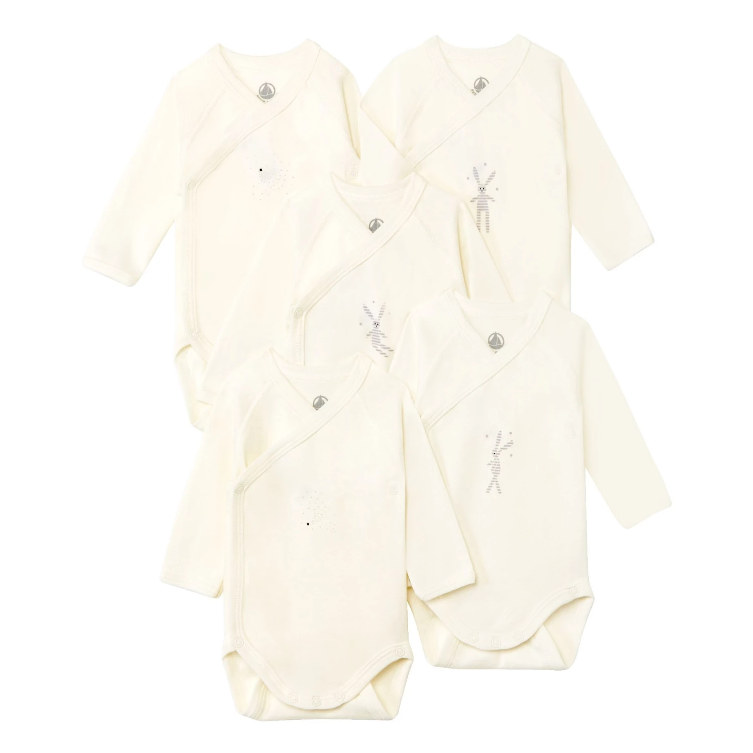 - Details : Fantasy print, Crossover neckline, Long sleeves, Side popper buttons, Snap fasteners at the crotch for easy slip on