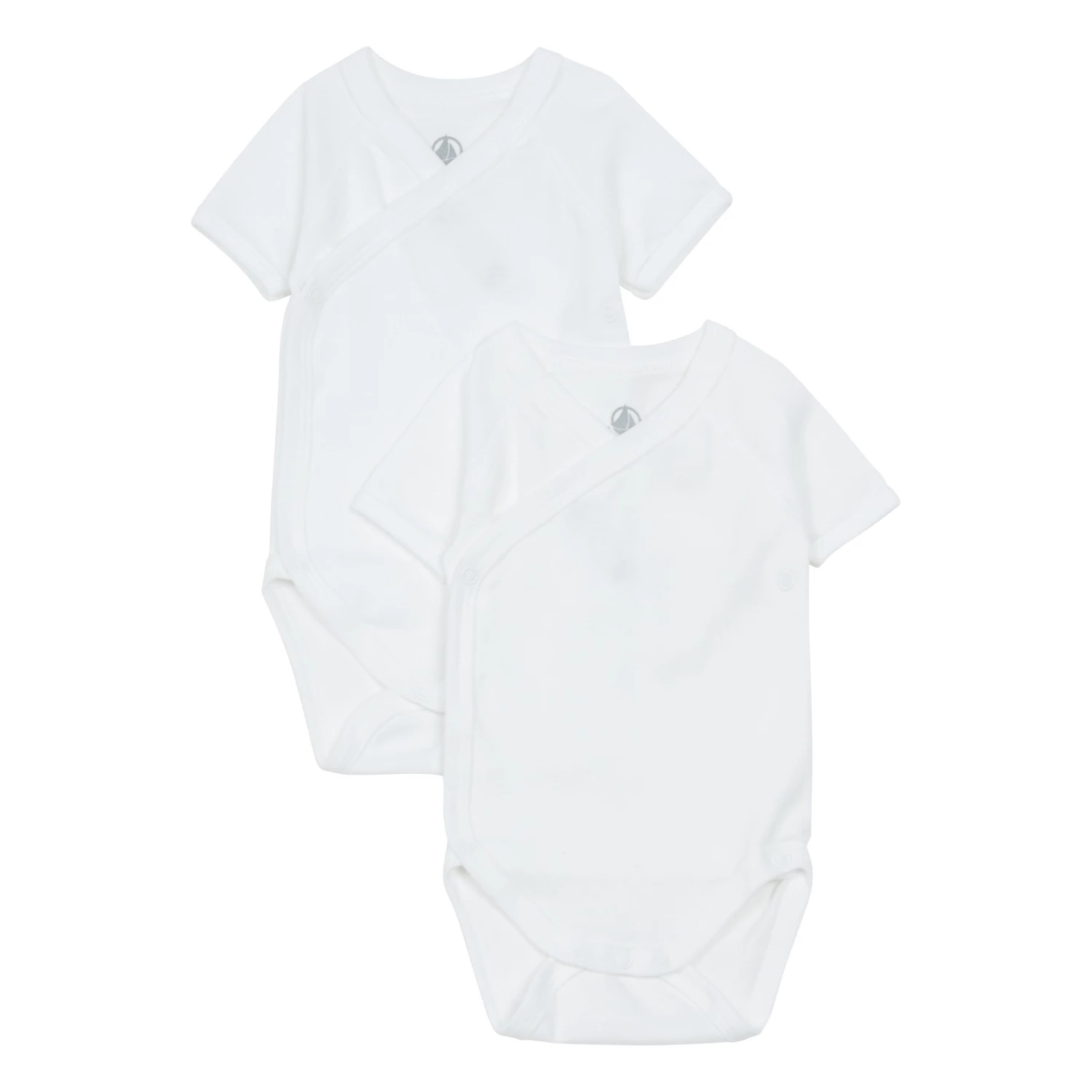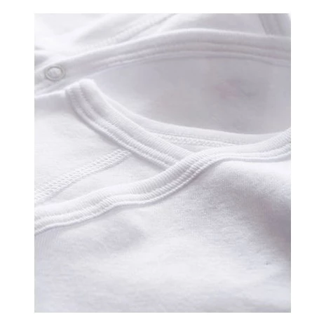 - Details : Crossover neckline, Short raglan sleeves, Side popper buttons, Snap fasteners at the crotch for easy slip on, Soft touch