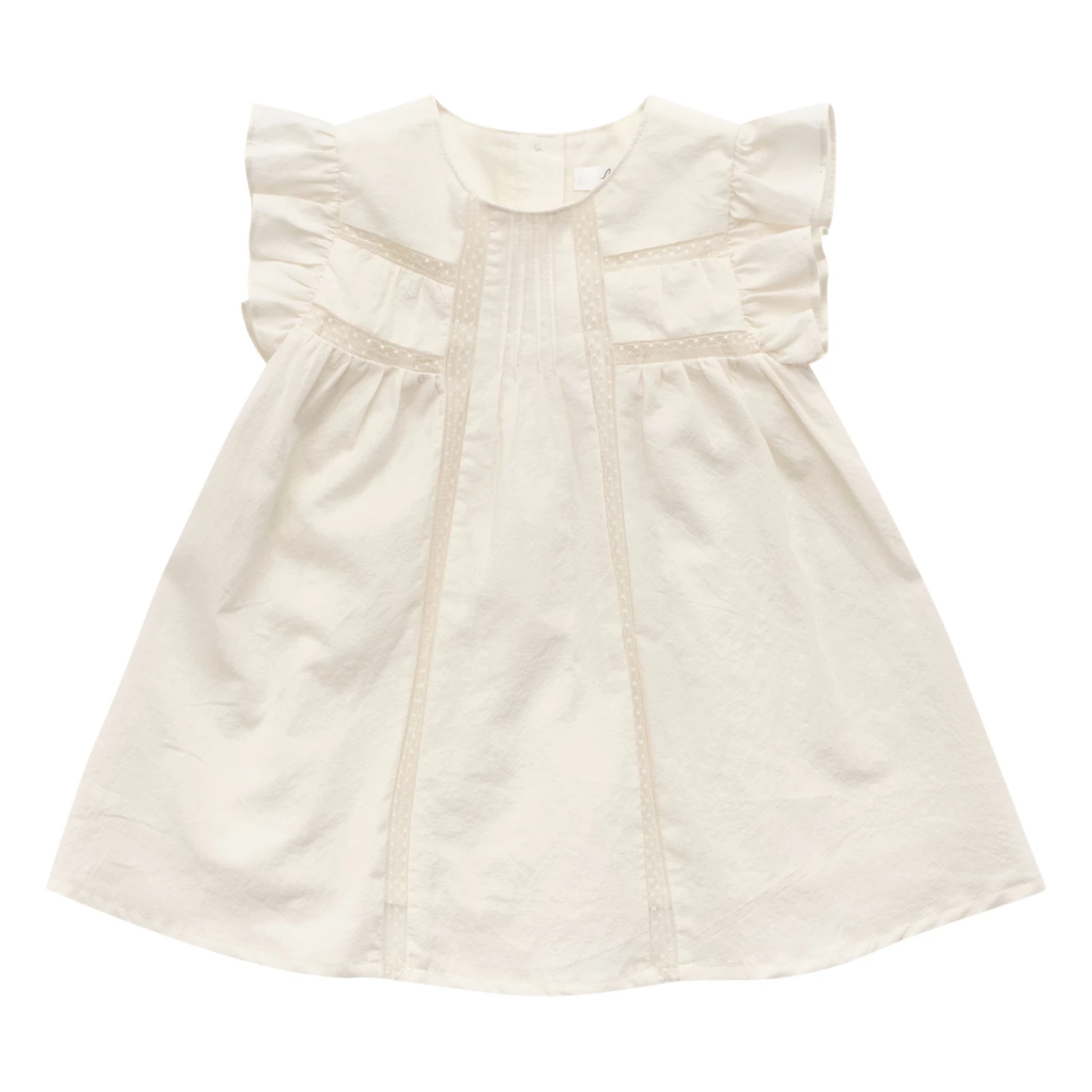- Lace details, Frilled sleeves, Crew neck, Pintucks, Sleeveless, Pleated, Openwork