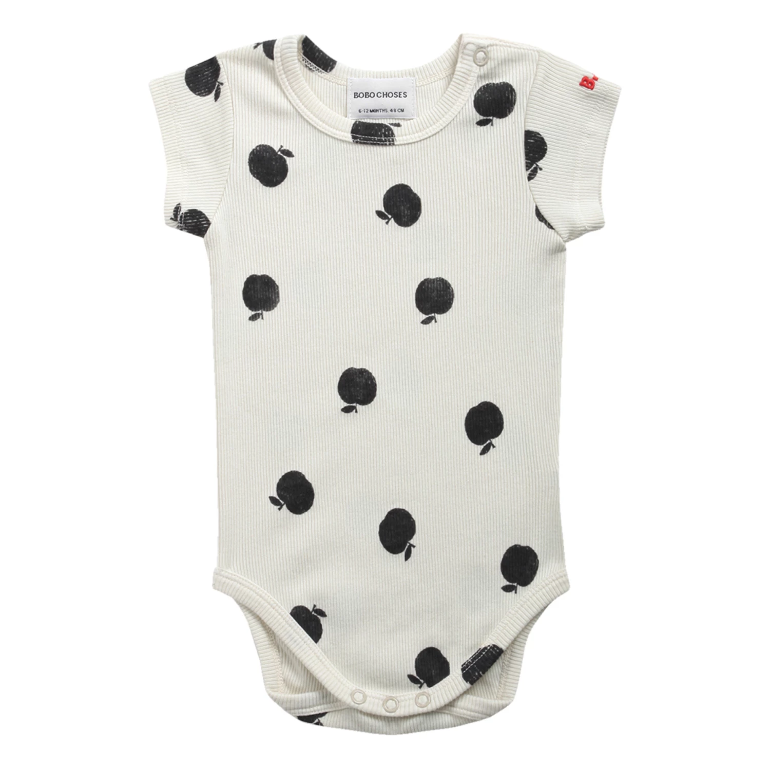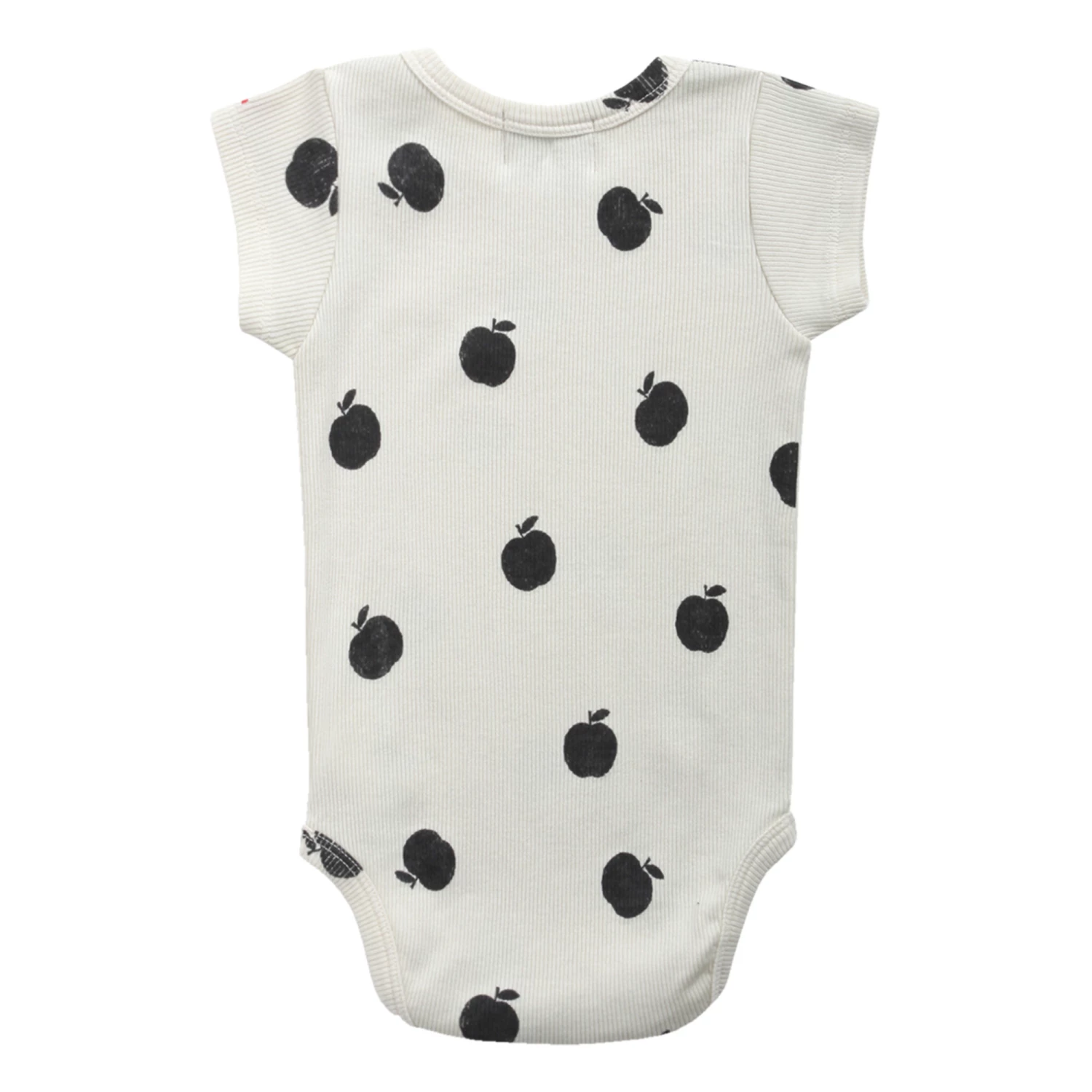- Details : Apples print, Round Neck, Short sleeves, Collar popper buttons, Snap fasteners at the crotch for easy slip on, Ribbed, Embroidered logo, – Comfortable