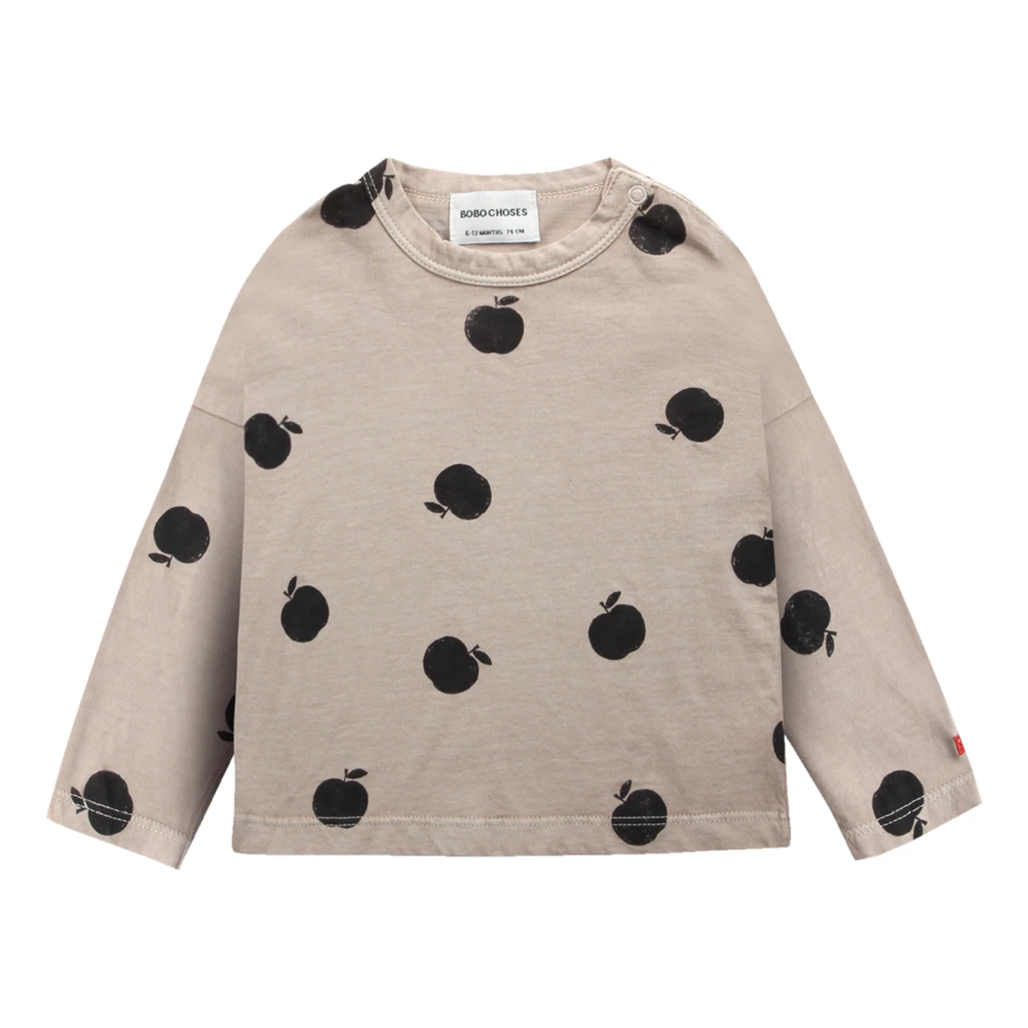 - Details : Apples print, Round Neck, Low armhole, Long sleeves, Collar popper buttons, Worn Effect