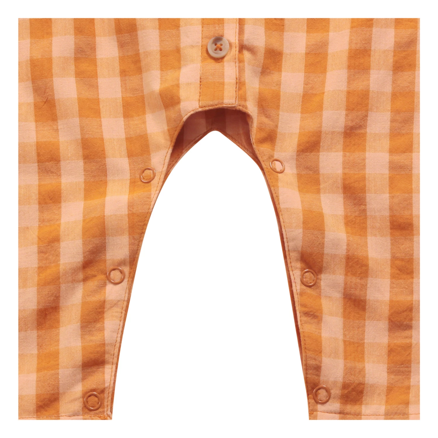 - Front button(s), Wooden button(s), Press stud(s) at the crotch for easy opening, Checked print