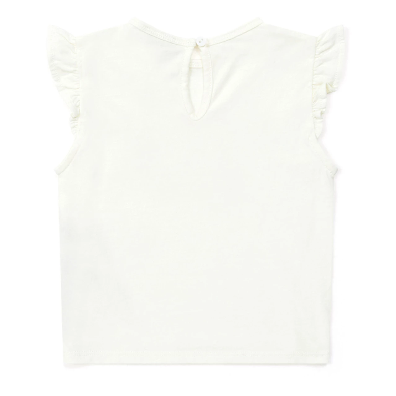 - Flounce sleeve, Crew neck, Lightweight and comfortable, Short sleeves, Print on front, Top stitched edges