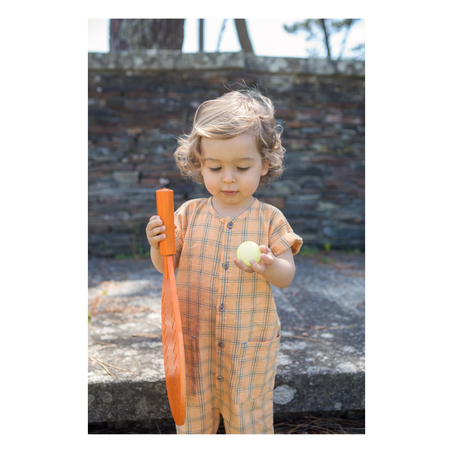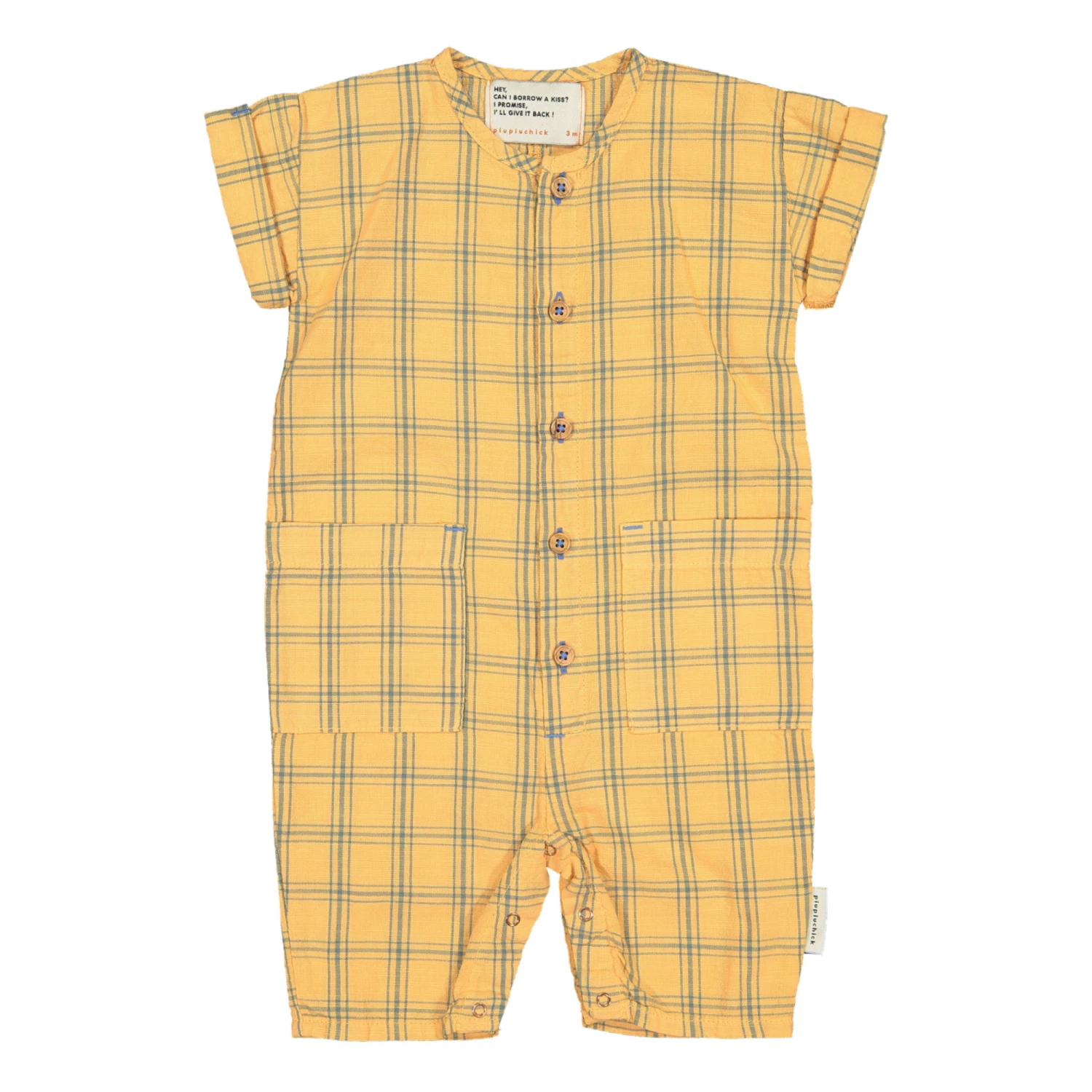 - Wooden button(s), Press stud(s) at the crotch for easy opening, Placket, Checked print