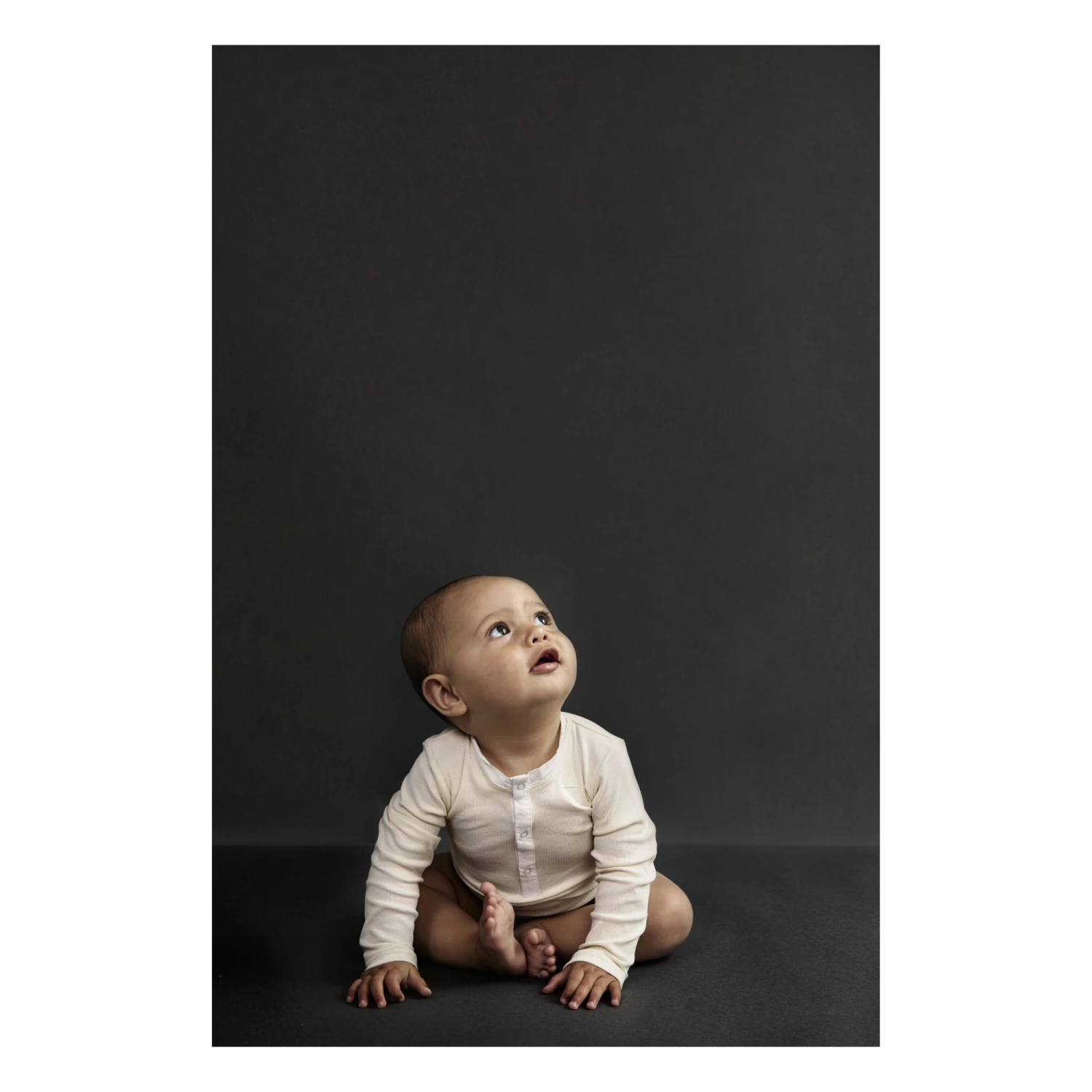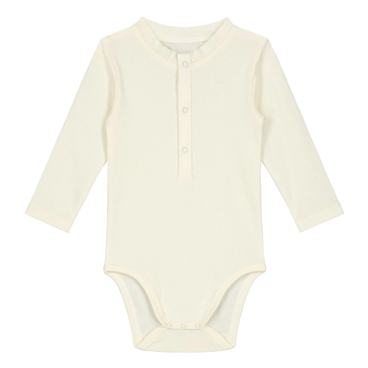- Details : Round Neck, Long sleeves, Snap fasteners at the crotch for easy slip on, Button tab, Ribbed