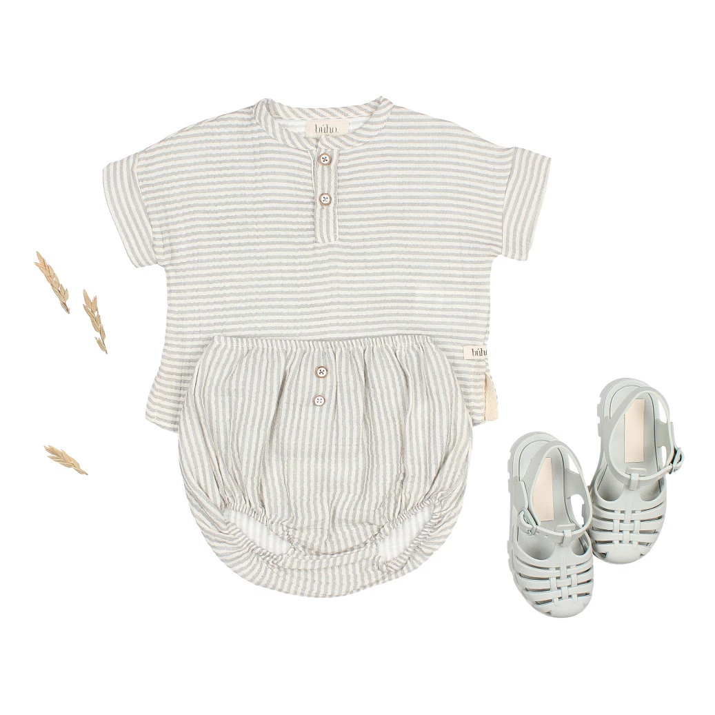 - Elastic at thighs, Top stitched, Lightweight and comfortable, Elasticated waist, Decorative buttons, Sewn-in brand label