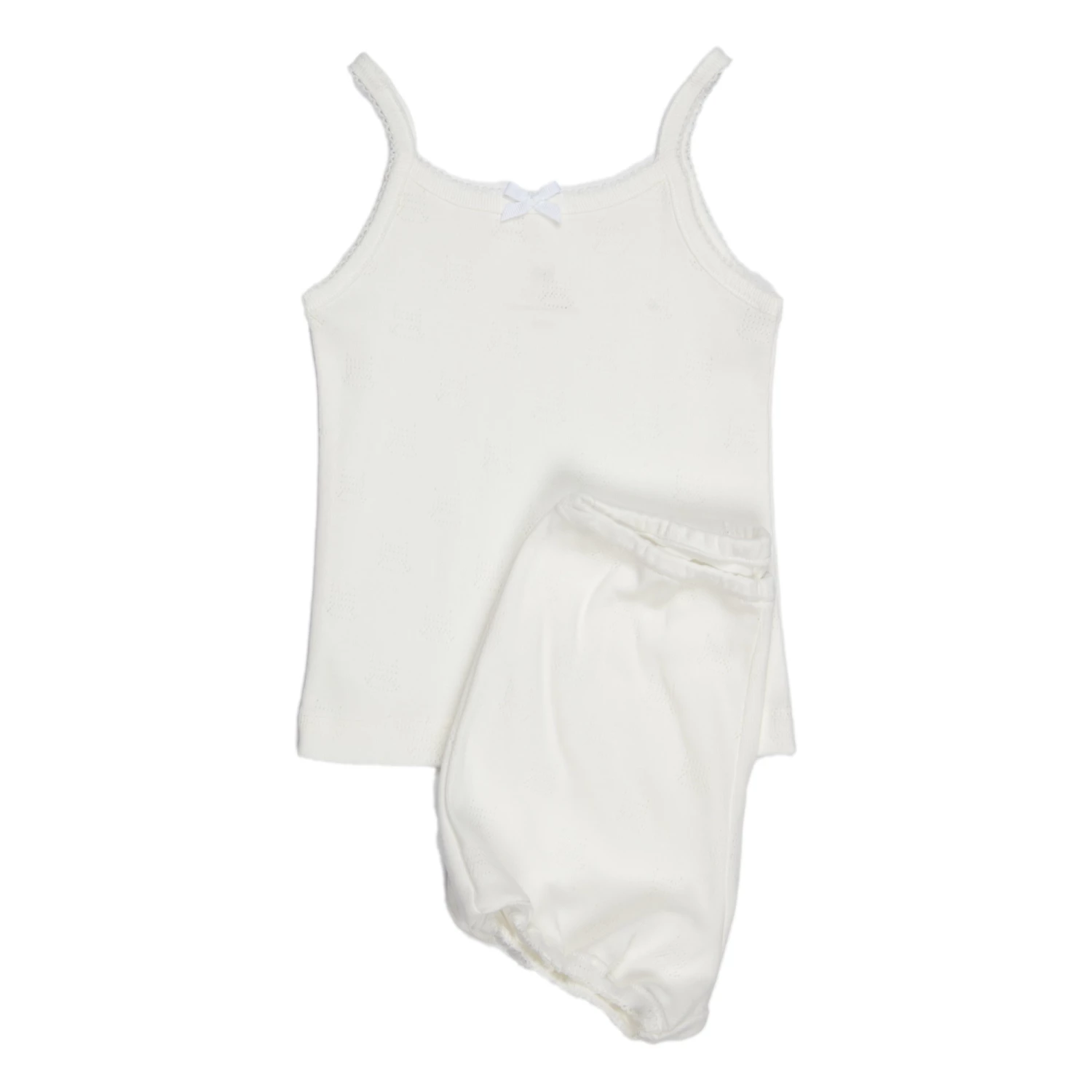 - Decorative bow(s), Elastic at thighs, Top stitched, Flowy, Lightweight and comfortable, Elasticated waist, Openwork, Thin straps
