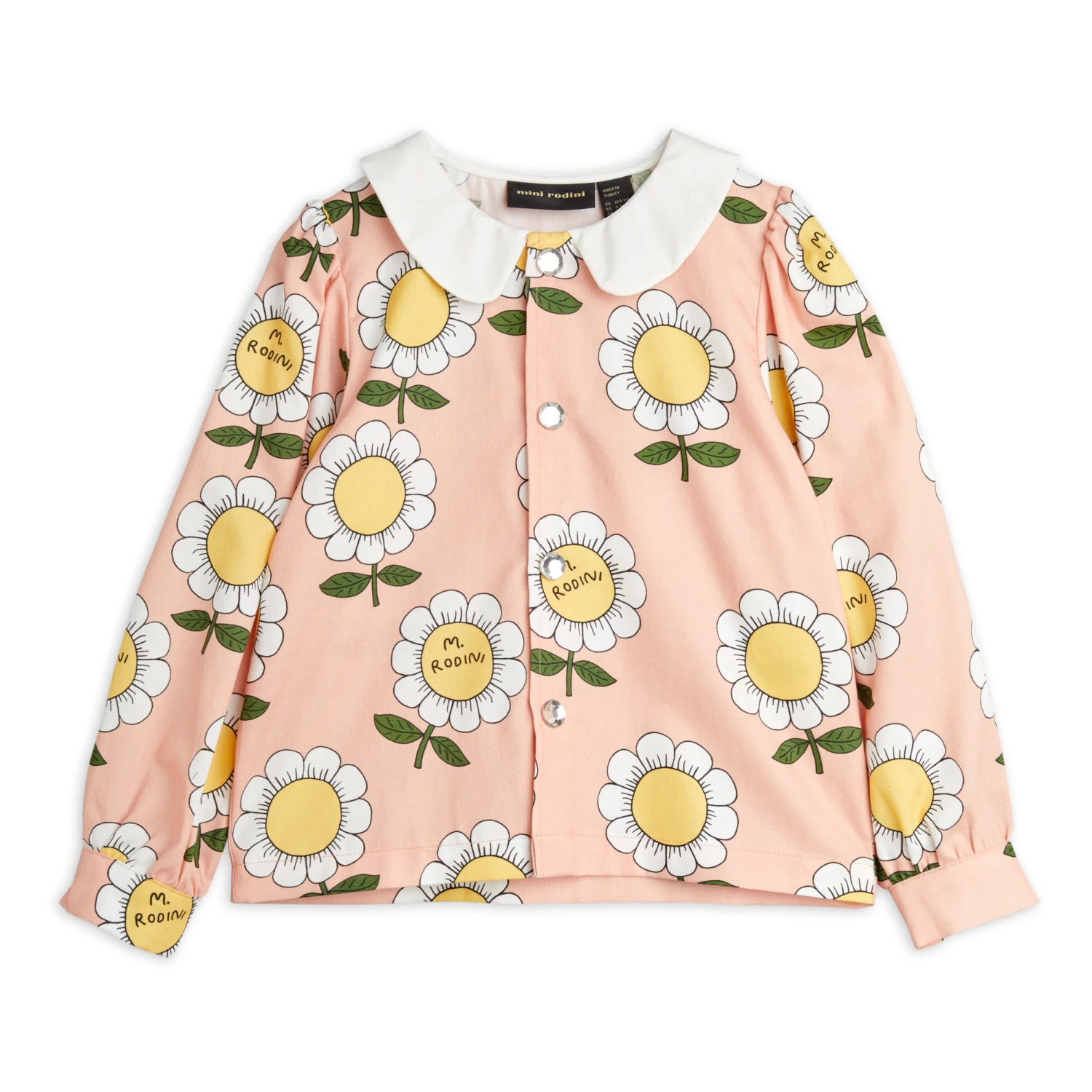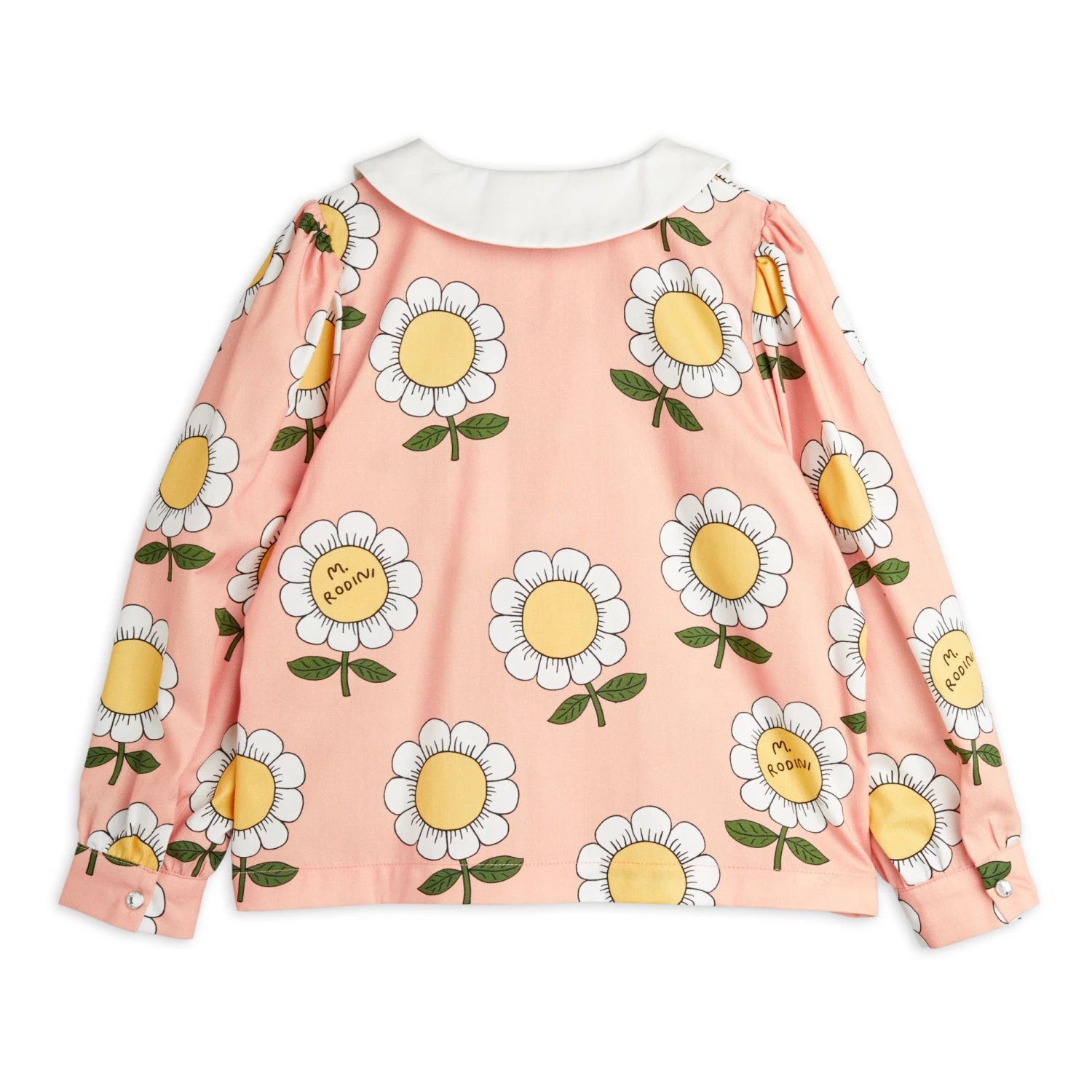 - Flowy, Long sleeves, Buttoned cuffs, Gathered at shoulders, Peter Pan collar