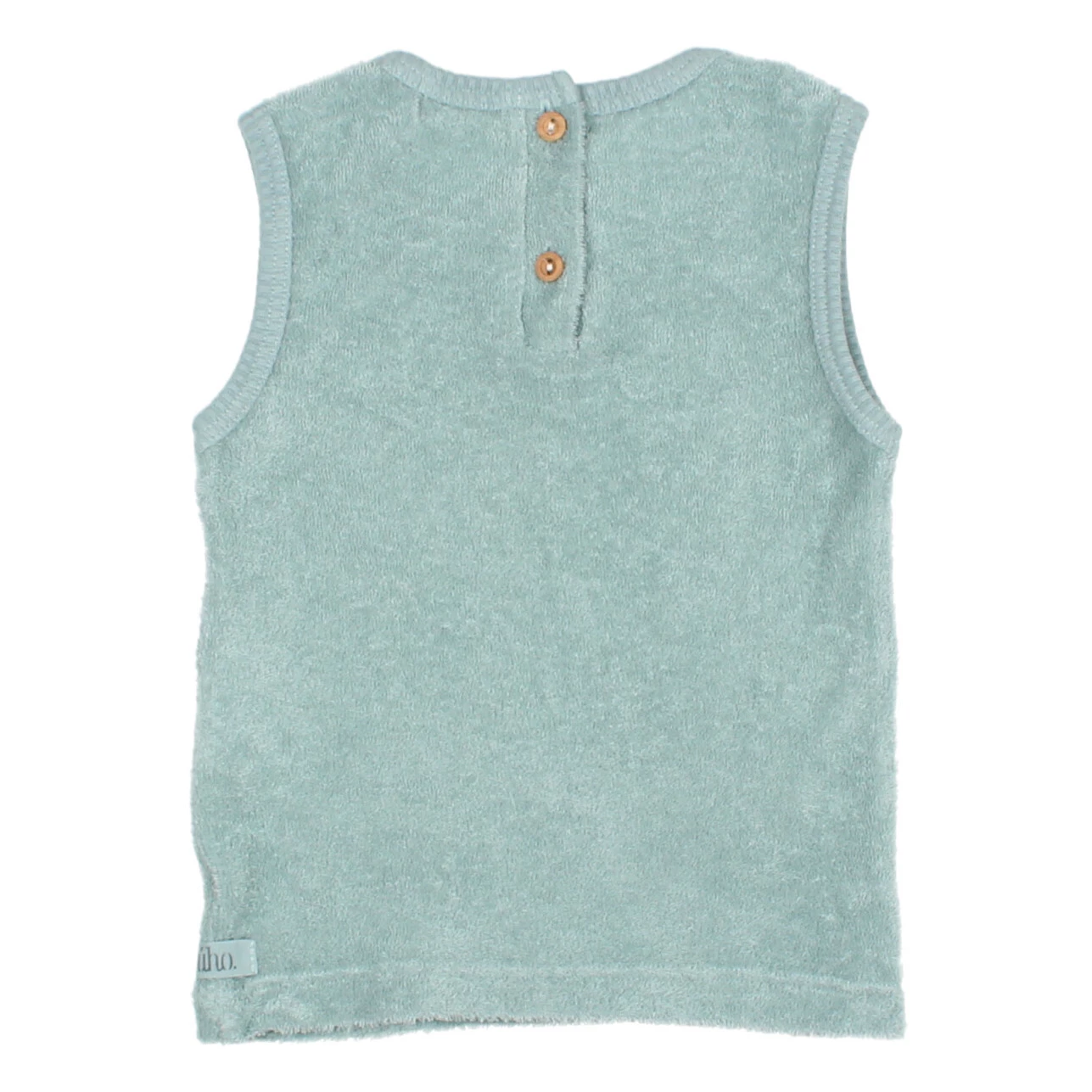 - Soft, Crew neck, Print on front, Ribbed edges, Sleeveless, Sewn-in brand label, Comfortable