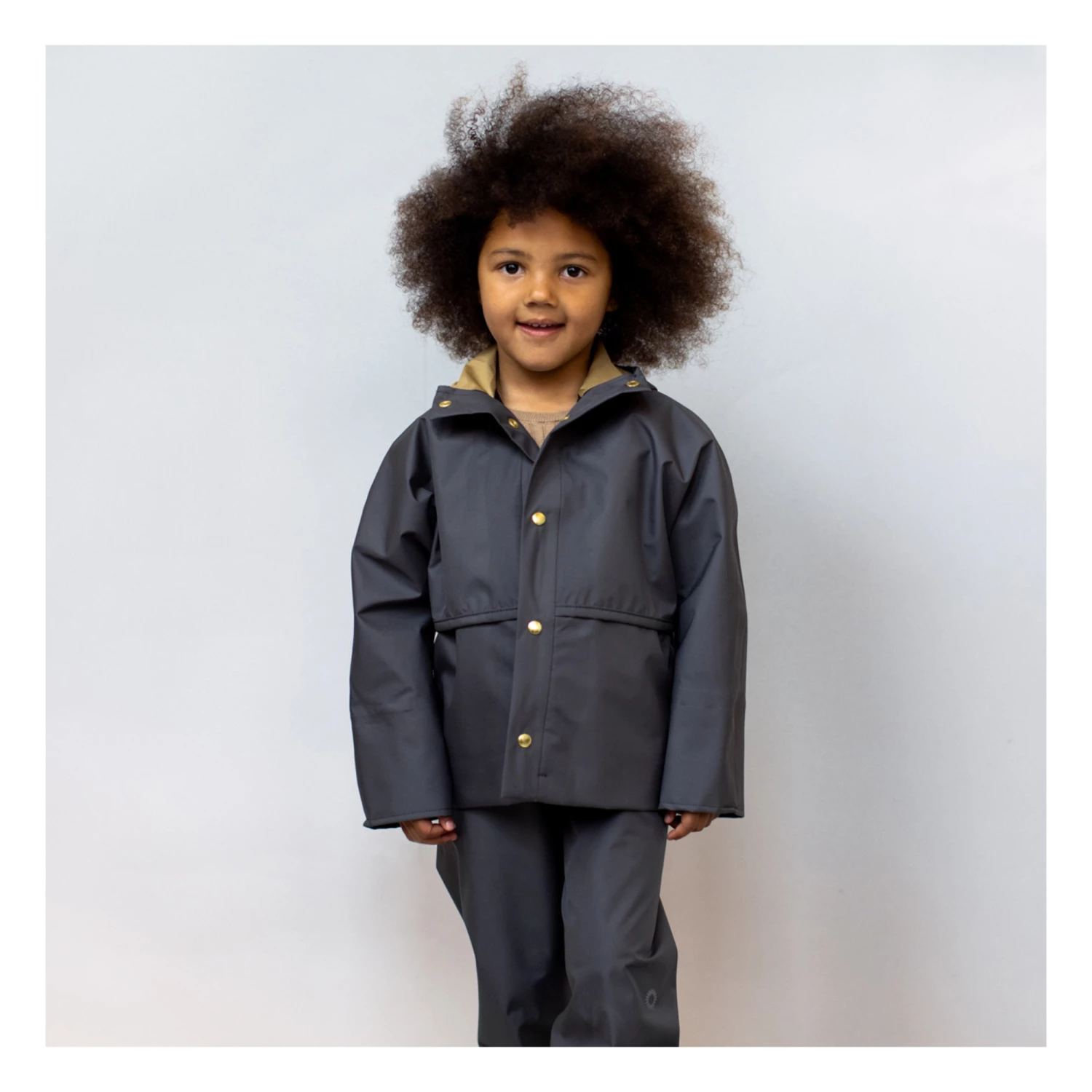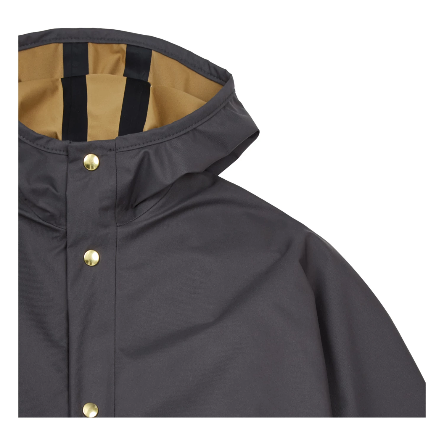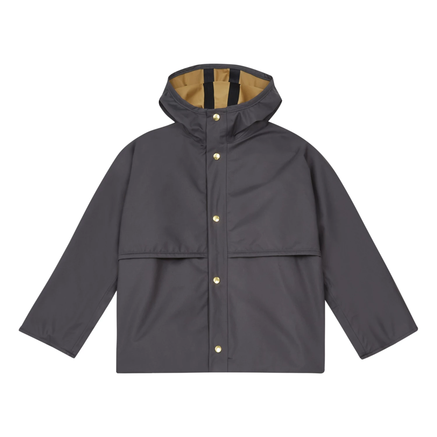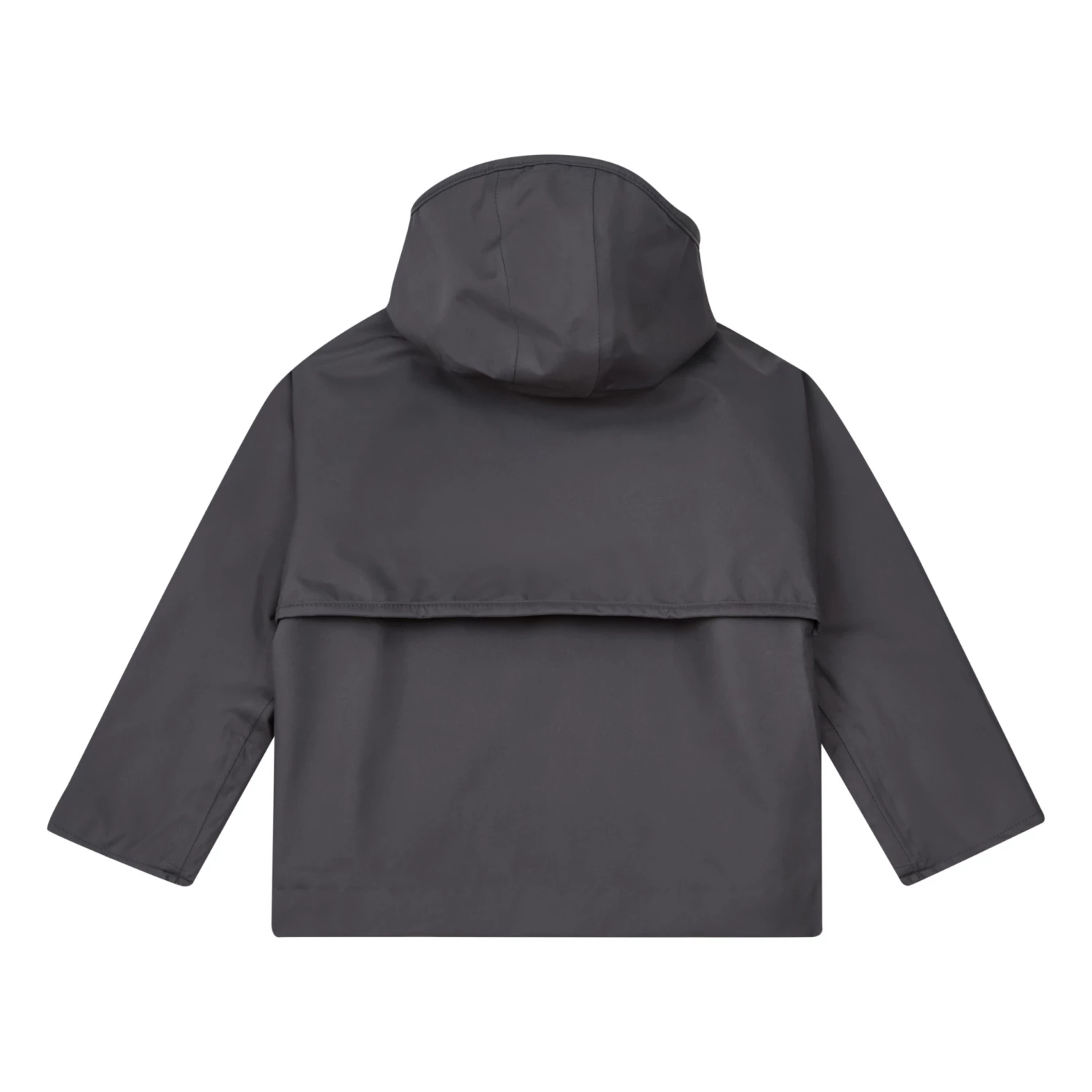 - Waterproof, Long sleeves, Breathable, Top stitched edges, Side pockets, Wide armholes, Hood