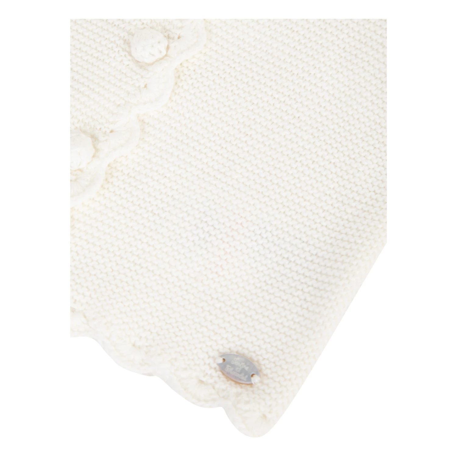 - Logo on front, Long sleeves, Scalloped edges, Pompom(s), Decorative knit