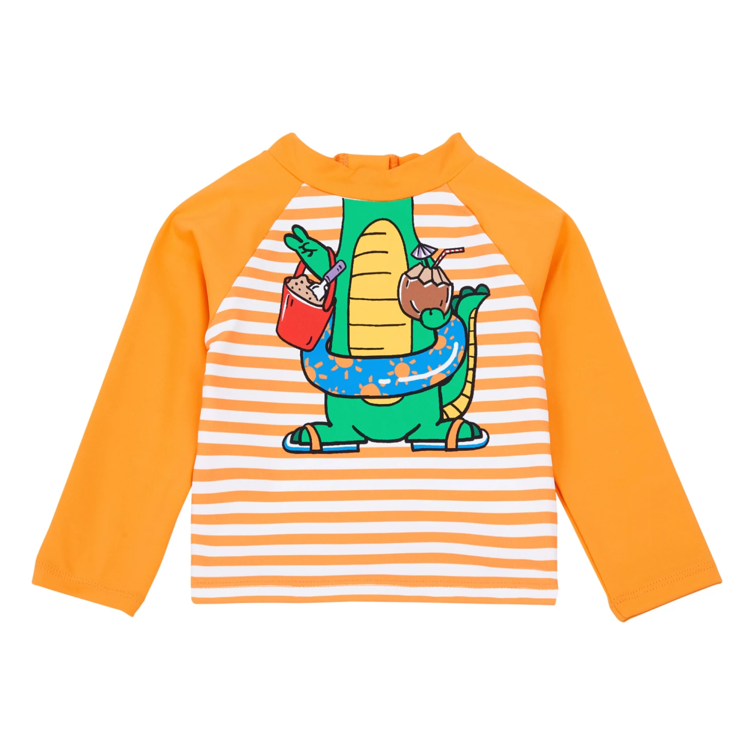 - Garment pulls on, Press stud(s) at the neck, Stripe print