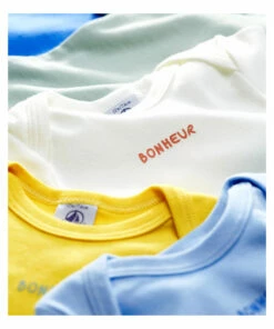 Plain Organic Cotton Short Sleeve Baby Bodysuits – Set of 5 White Petit Bateau Fashion Baby