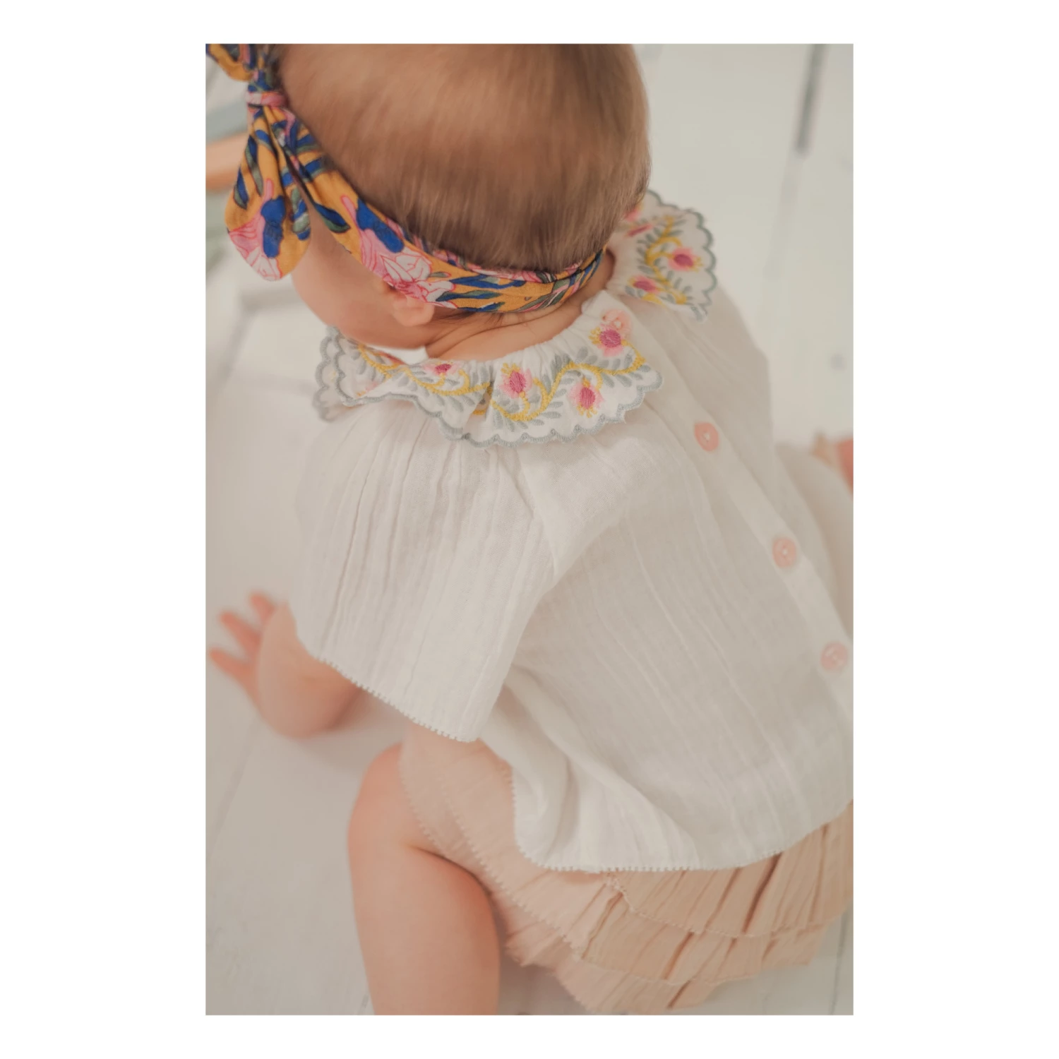 - Elastic at thighs, Frilled yoke, Decorative edges, Elasticated waist, Gathered at the waist