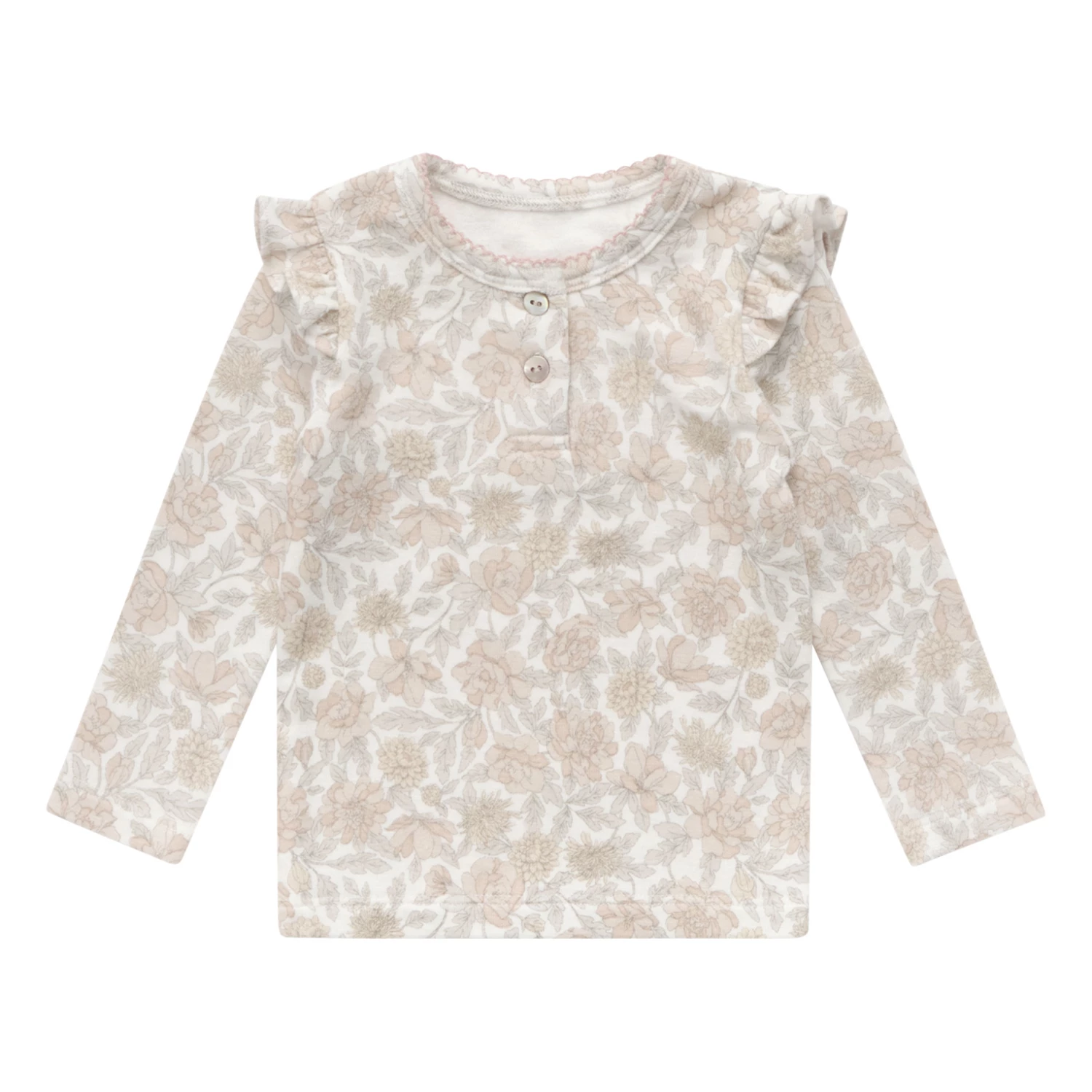 - Frilled sleeves, Crew neck, Top stitched, Long sleeves, Elasticated waist, Buttoned collar