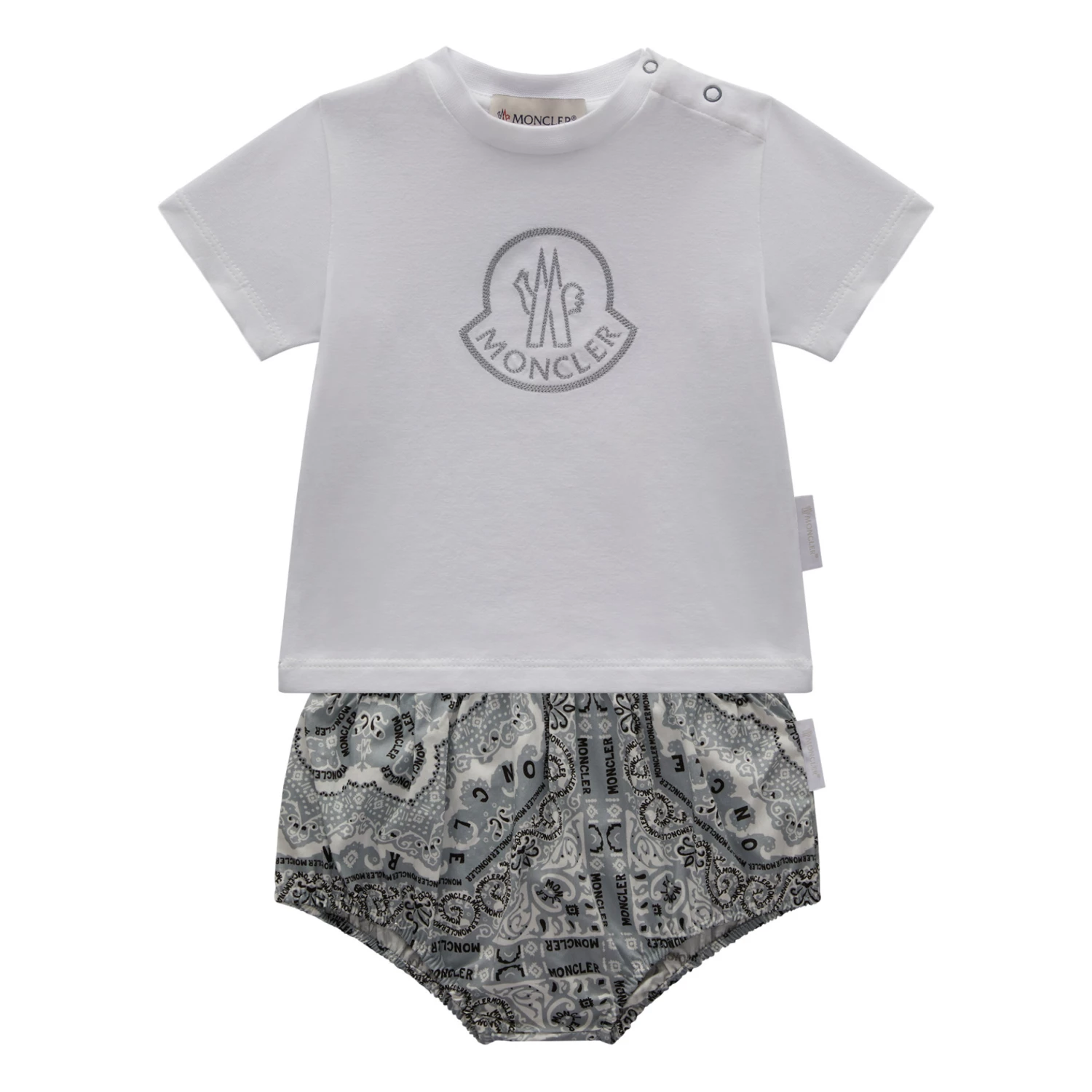 - Soft, Crew neck, Top stitched, Embroidered logo, Contrasting logo, Short sleeves, Elasticated waist, Sewn-in brand label, Ribbed neckband