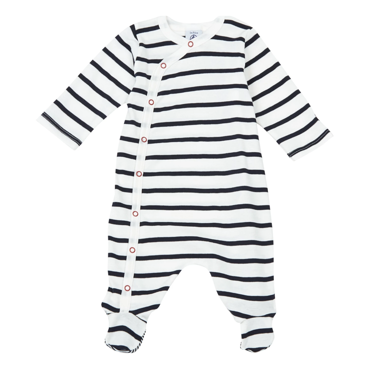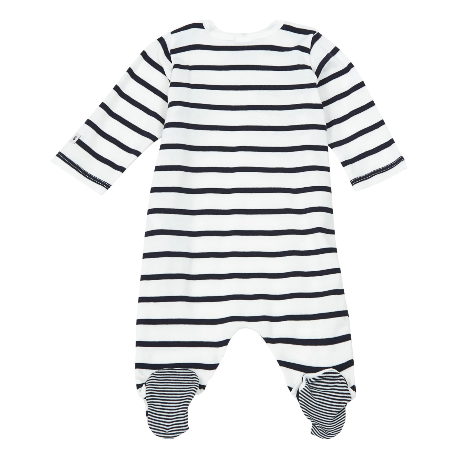 - Button(s) from the neck to the ankle, Press stud(s), Marine print